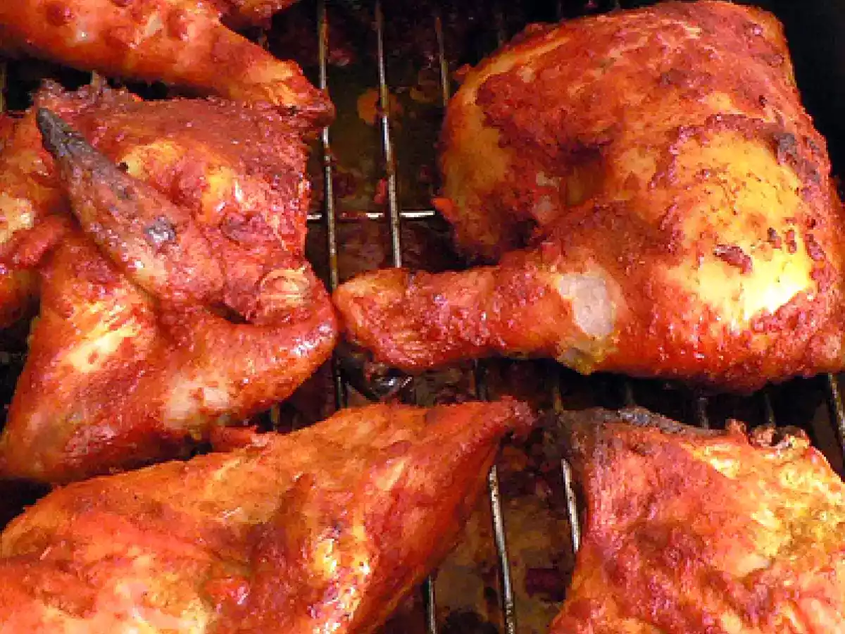 Pui tandoori (indian) pe gratar Felul principalFoarte ușor40 min Trimite unui prieten Printează pagina Adresează o întrebare autorului Postează o poză cu rețeta gătită de tine Ingrediente 4 1 cana iaurt 1/2 lamaie (sucul) 1 ceapa razalita(sau taiata cu mixerul fin) 1 lingura de usturoi (razalit) 1 lingura ghimbir (razalit) 1 lingura garam masala 1 si1/2 lingura paprika (boia) 1 lingurita chimen (praf) 1 lingurita coriandru (praf) 1 lingurita piper ceyenne (sau boia iute) sare 500 g pulpe de pui