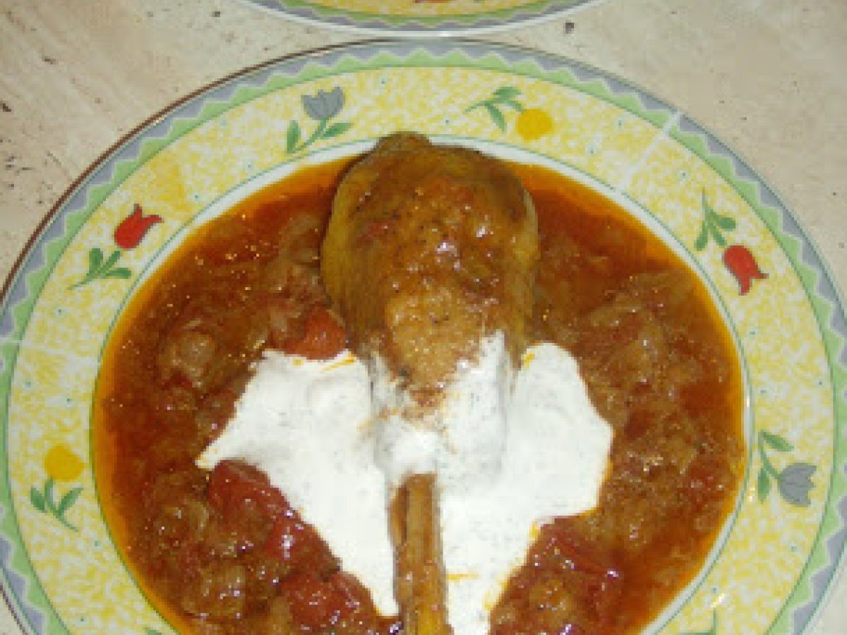 Pui taranesc cu rosii si smantana Felul principalFoarte ușor35 min Trimite unui prieten Printează pagina Adresează o întrebare autorului Postează o poză cu rețeta gătită de tine Ingrediente 4 1 kg carne de pui de curte 500 g ceapa 400 g rosii in suc propriu sau proaspete 50 g unt 1 lingura faina 1 ceasca smantana 300 ml supa de oase marar sare, piper