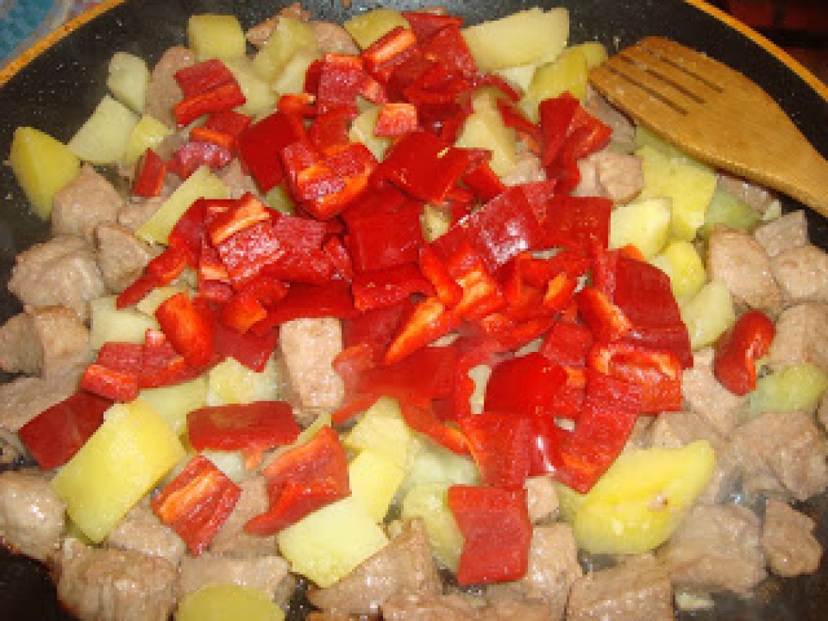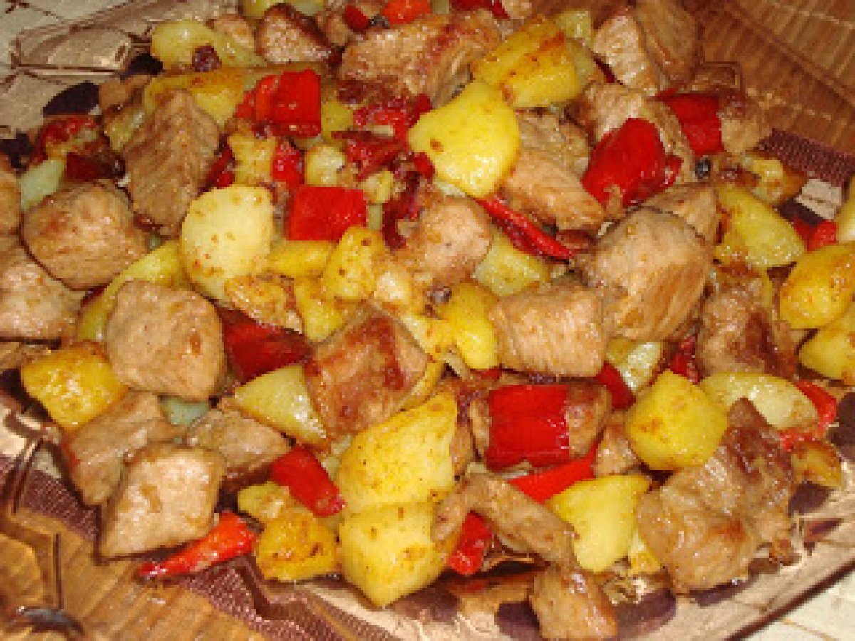 Pulpa de porc cu cartofi si ardei kapia PrecedentulUrmătorul Felul principalFoarte ușor40 min Trimite unui prieten Printează pagina Adresează o întrebare autorului Postează o poză cu rețeta gătită de tine Ingrediente 4 600 g pulpa de porc 6 cartofi 3 adrei kapia