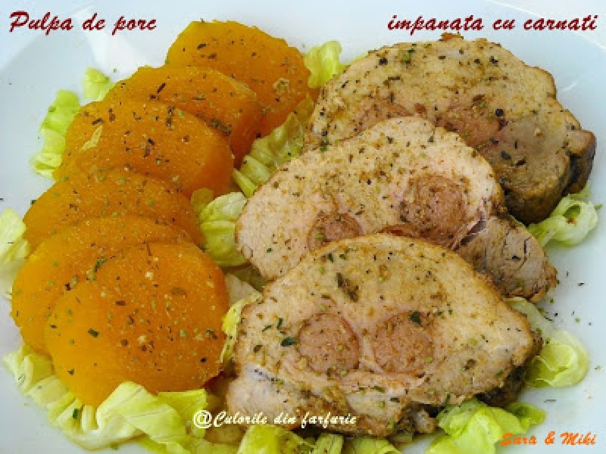 Pulpa de porc impanata cu carnati