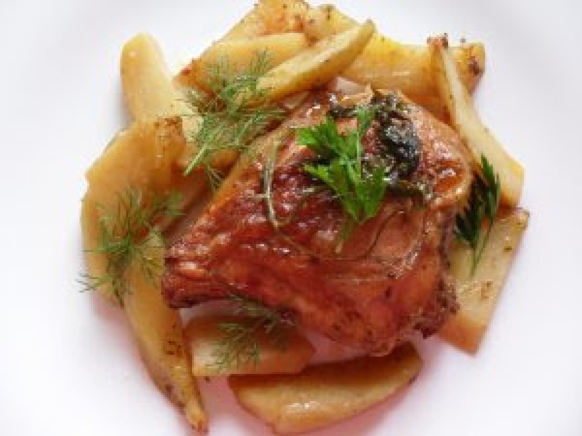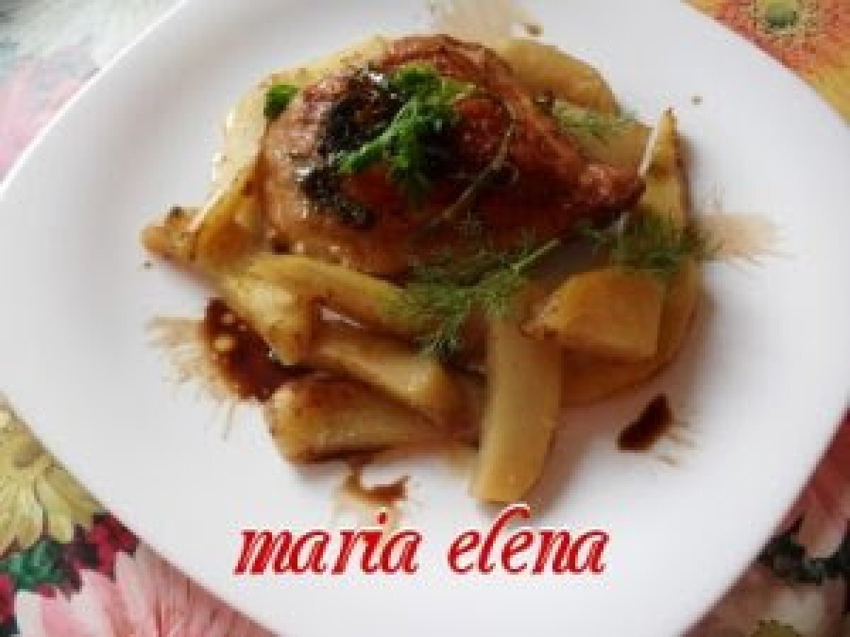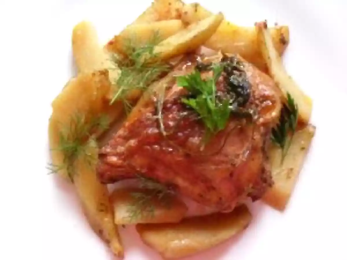 Pulpe de pui la cuptor cu bere neagra si cartofi PrecedentulUrmătorul Felul principalFoarte ușor1 h 20 m Trimite unui prieten Printează pagina Adresează o întrebare autorului Postează o poză cu rețeta gătită de tine Ingrediente 4 3-4 pulpe superioare de pui, 4 cartofi mari, 1 pahar de bere neagra, 2 catei de usturoi, boia, vegeta, piper, cateva fire de patrunjel verde, 1 ligurita rasa de rozmarin, 1 lingura ulei de palmier Pt decor: Crengute de patrunjel verde, marar verde si cateva picaturi de otet balsamic.