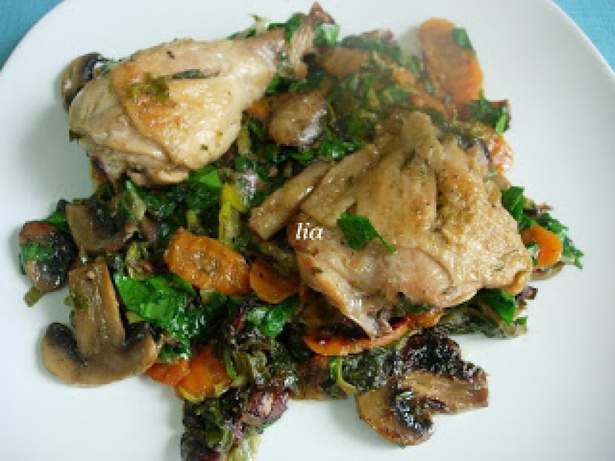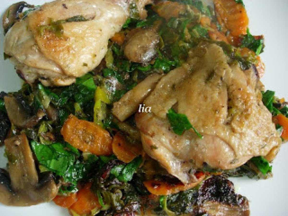 Pulpe de pui, pe pat de legume cu leurda PrecedentulUrmătorul Felul principalFoarte ușor35 min Trimite unui prieten Printează pagina Adresează o întrebare autorului Postează o poză cu rețeta gătită de tine Ingrediente 4 1 fir ceapa verde 1 fir praz, doar partea verde 2 morcovi mici sau 1 mare 3 ciuperci marisoare 1 legatura leurda 1 lingura ulei Sare Piper