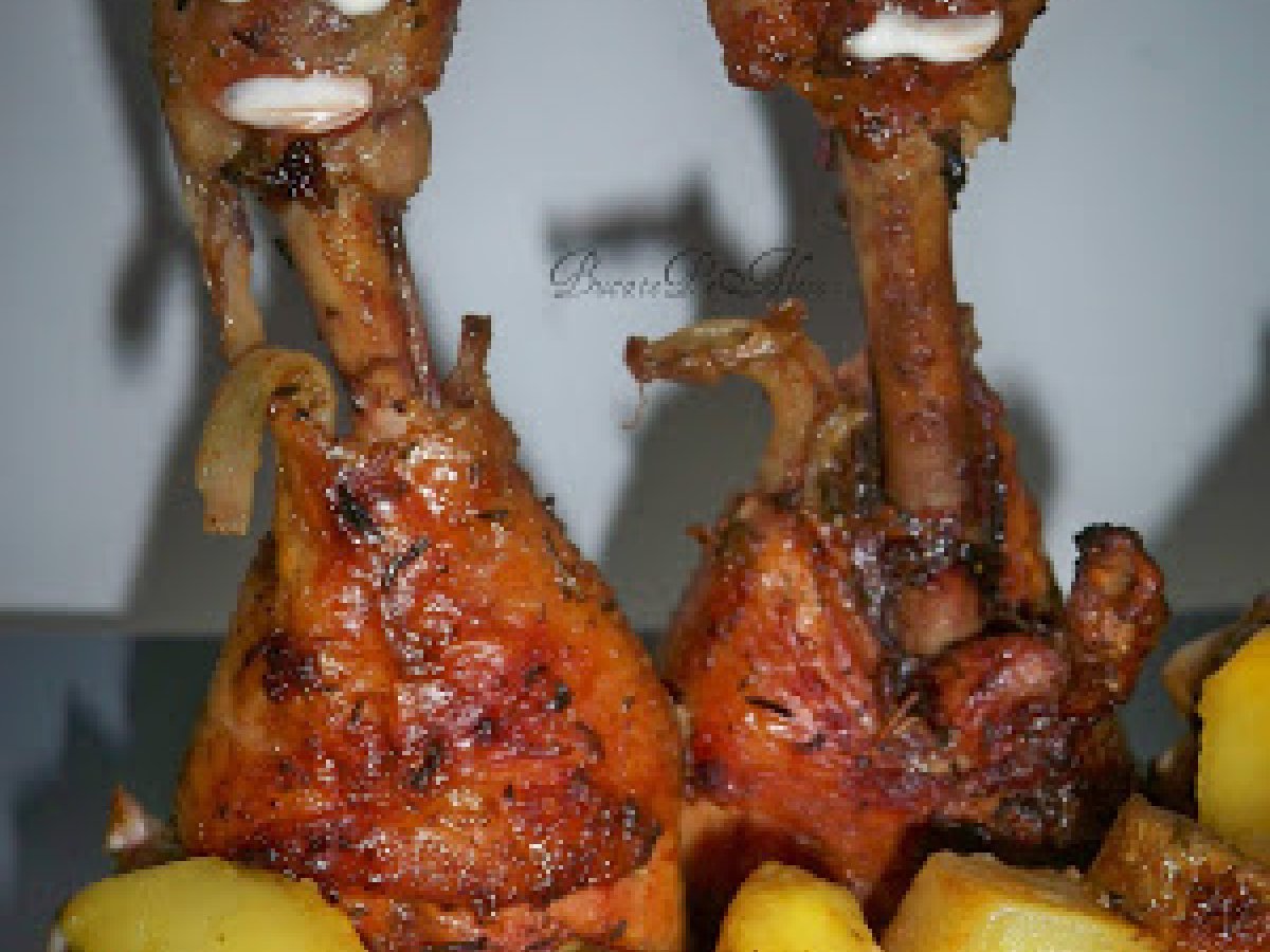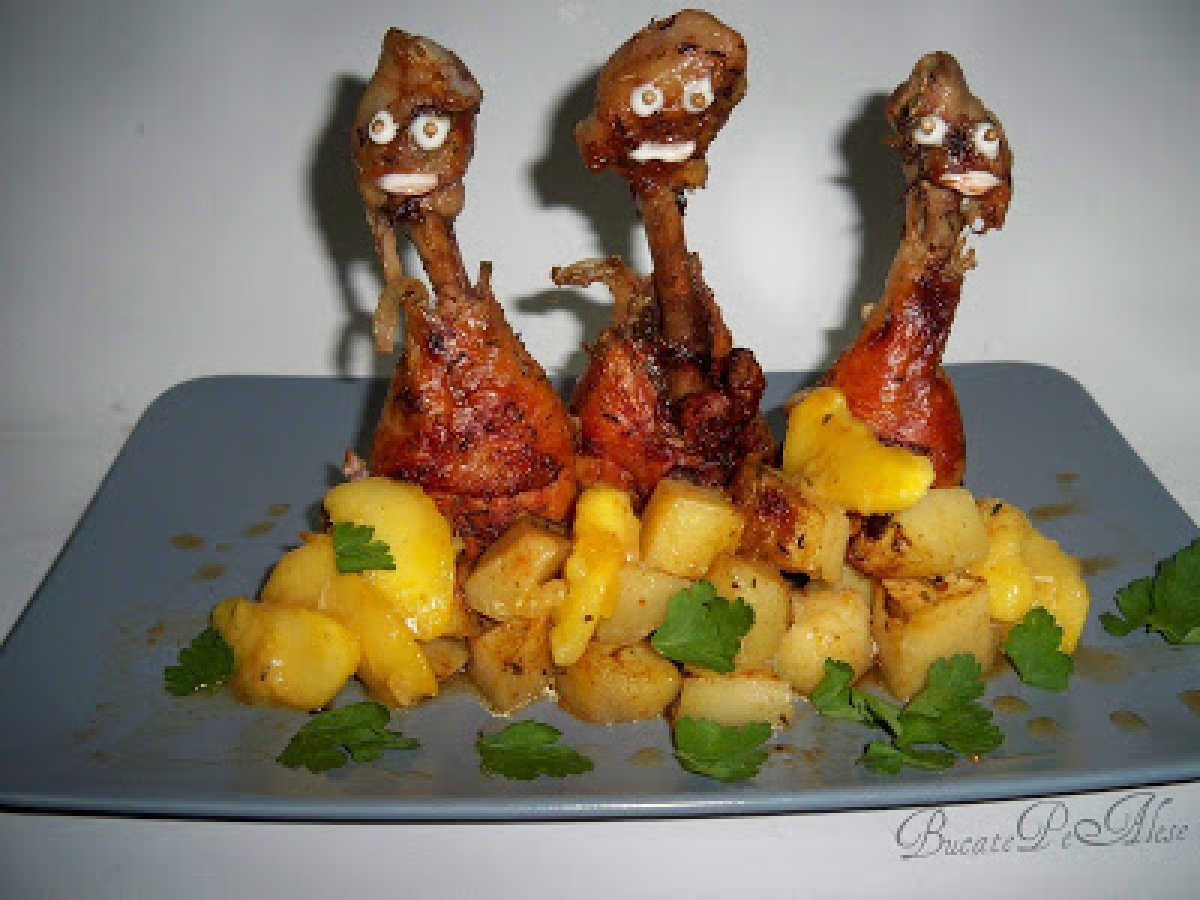 Pulpe la cuptor cu sos de mere si portocale PrecedentulUrmătorul Felul principalFoarte ușor40 min Trimite unui prieten Printează pagina Adresează o întrebare autorului Postează o poză cu rețeta gătită de tine Ingrediente 6 3 pulpe de pui 2 mere 2 portocale 3 cartofiuleifoi dafinrozmarincondiment pentru - puivegeta, sareunt cat o nuca