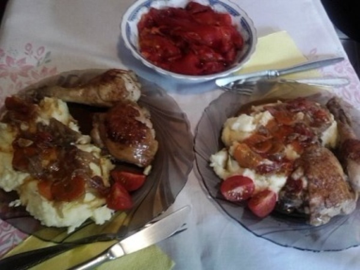 Pulpe la dubletta PrecedentulUrmătorul Felul principalFoarte ușor1 h 25 m Trimite unui prieten Printează pagina Adresează o întrebare autorului Postează o poză cu rețeta gătită de tine Ingrediente 4 3 pulpe 1 morcov 2 cepe 2-3 catei de usturoi 2 linguri ulei de masline 3 rosii sherry o cescuta vin alb sare, piper cimbru,enibahar foi de dafin boia de ardei.