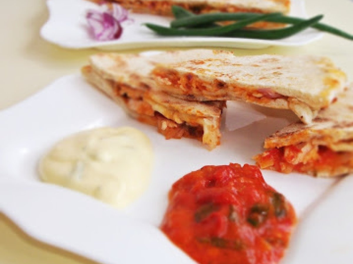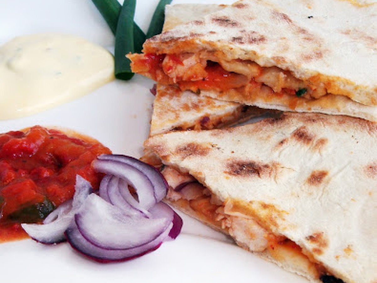 Quesadilla cu pui si salsa picanta PrecedentulUrmătorul Felul principalFoarte ușor35 min Trimite unui prieten Printează pagina Adresează o întrebare autorului Postează o poză cu rețeta gătită de tine Ingrediente 4 pentru lipii: 500-600 g faina alba un cub drojdie 1/2 lingurita sare o lingura unt 250-300 ml apa pentru salsa picanta de legume: 4 ardei grasi un ardei iute o cana suc rosii o rosie mare sare piper busuioc cimbru boia codite ceapa verde o lingura ulei de masline pentru umplut: un piept mare de pui sos teriyaki sare piper busuioc 200-250 g cascaval doua cepe rosii pentru sosul alb: un ou 200 ml ulei 3 linguri smantana codite ceapa verde 1/2 lingurita praf de usturoi