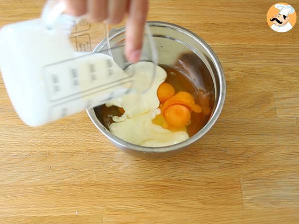 Se amesteca ouale cu smantana, sarea si piperul. Se toarna apoi peste somon.