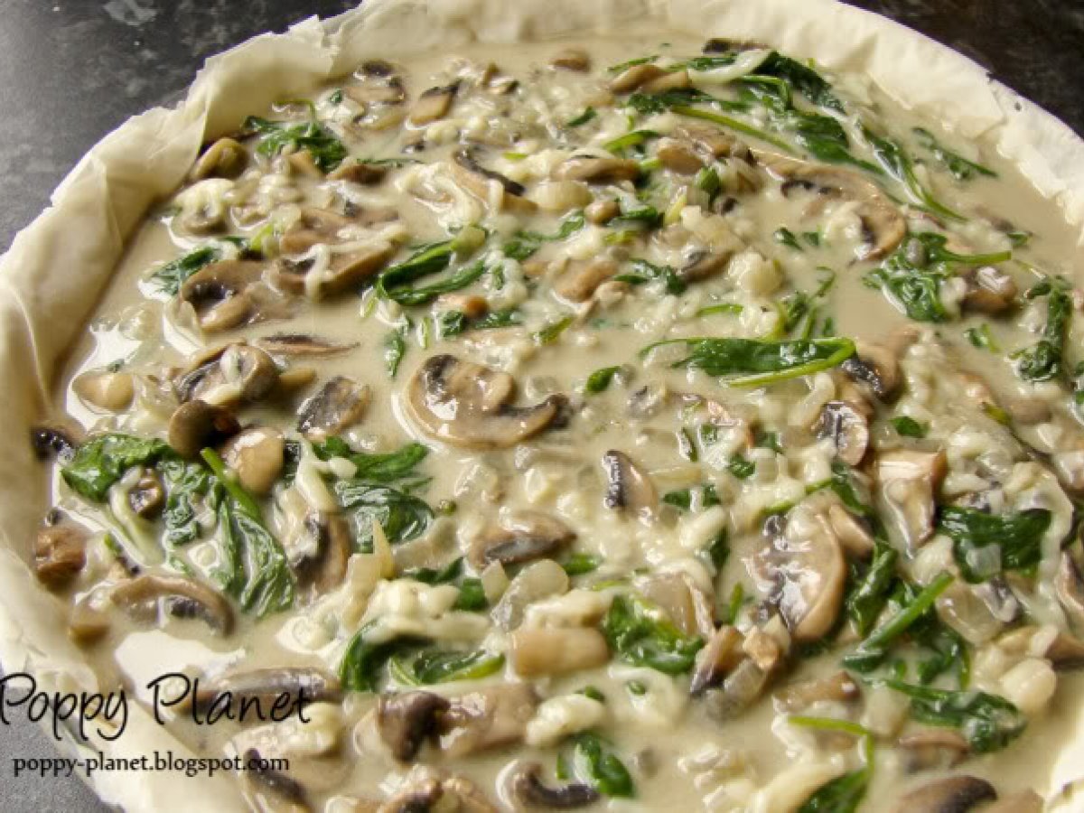 Quiche cu spanac si ciuperci PrecedentulUrmătorul Felul principalFoarte ușor1 h 5 m Trimite unui prieten Printează pagina Adresează o întrebare autorului Postează o poză cu rețeta gătită de tine Ingrediente 4 200-250 g ciuperci proaspete 150 g frunze de baby spanac 1 ceapa 4 oua 100 g smantana 150 g cascaval aluat foietaj sare+piper