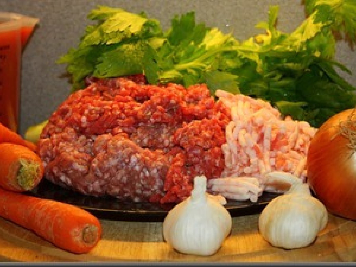 Ragù (sos bolognez) PrecedentulUrmătorul Felul principalFoarte ușor45 min Trimite unui prieten Printează pagina Adresează o întrebare autorului Postează o poză cu rețeta gătită de tine Ingrediente 6 1 kg carne tocata amestec vita si porc 2 cepe 2 morcovi 1 l suc de rosii 6 linguri ulei 200 g bacon sare 1/2 pahar vin sec alb 1 litru apacateva ramurele de telina