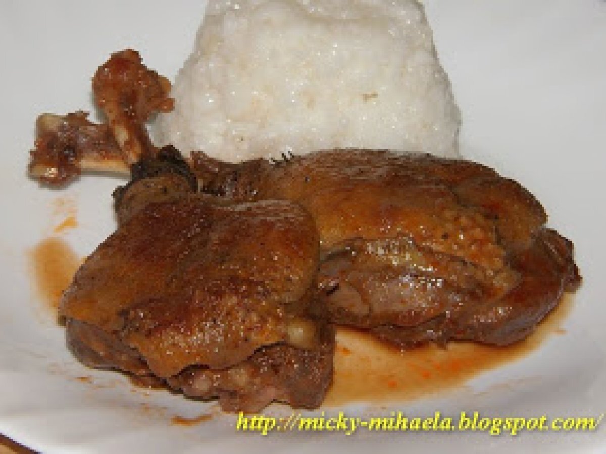 Rata cu sos dulce acrisor Felul principalFoarte ușor30 min Trimite unui prieten Printează pagina Adresează o întrebare autorului Postează o poză cu rețeta gătită de tine Ingrediente 2 4 pulpe de rata, 100 ml vin rosu, 3 linguri ulei, 1 lingura sos worcestershire, 1 lingura sos soia, 1 lingura miere, 1 lingura otet balsamic, 1 lingura bulion, sare, piper.