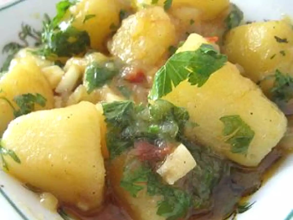 Retete de post iahnie de cartofi PrecedentulUrmătorul Felul principalFoarte ușor40 min Trimite unui prieten Printează pagina Adresează o întrebare autorului Postează o poză cu rețeta gătită de tine Ingrediente 2 1 ceapa 4-5 cartofi de marime medie sare si piper dupa gust ulei pentru prajit 1 legatura de verdeata 2 linguri de pasta de rosii 2-3 catei de usturoi.
