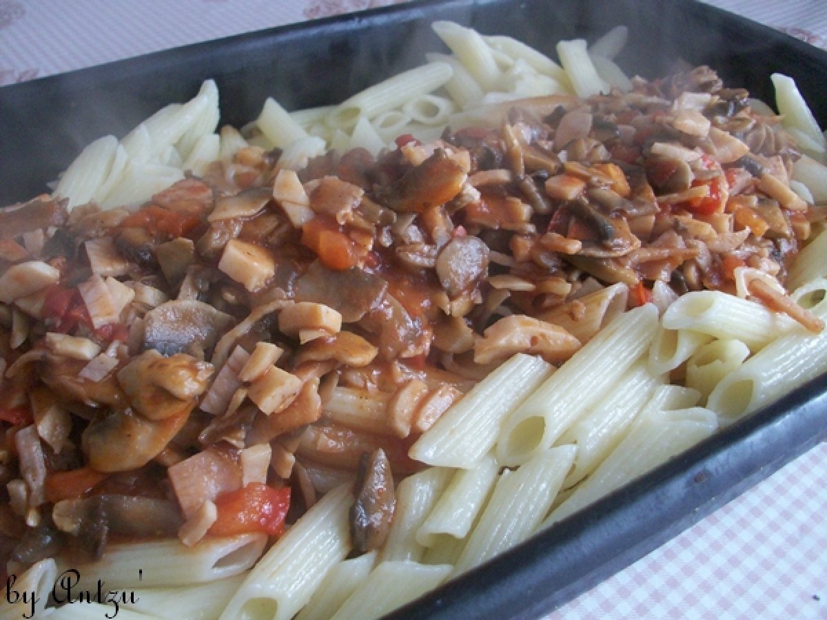 Rigatone al'forno PrecedentulUrmătorul Felul principalFoarte ușor35 min Trimite unui prieten Printează pagina Adresează o întrebare autorului Postează o poză cu rețeta gătită de tine Ingrediente 4 aprox 4 portii 400 g penne 200 g cascaval 200 g sunca 2 ardei 12 ciuperci(champignon) 600 ml suc de rosii/rosii deocojite maruntinte sare, piper