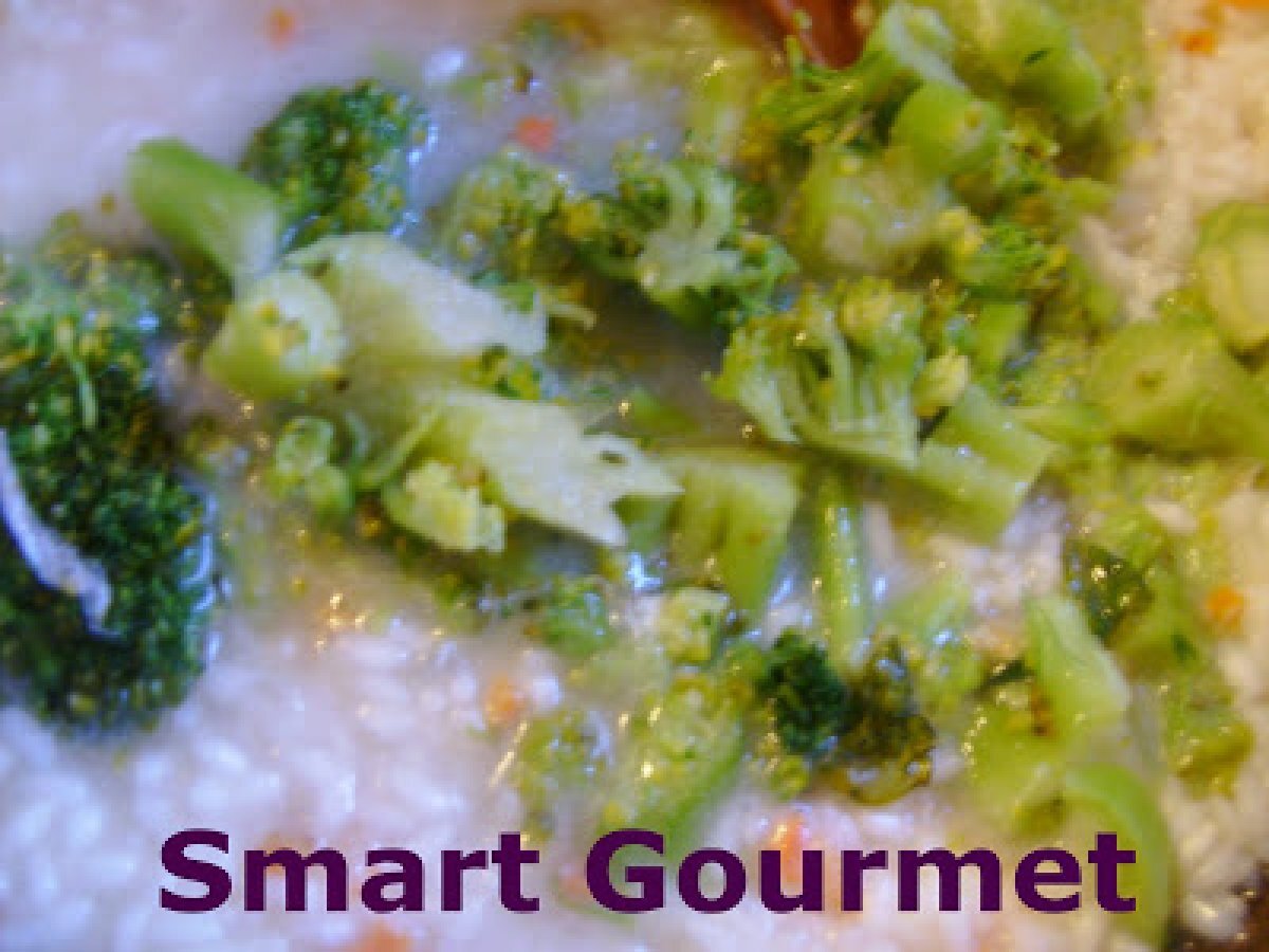 Risotto cu broccoli PrecedentulUrmătorul Felul principalFoarte ușor50 min Trimite unui prieten Printează pagina Adresează o întrebare autorului Postează o poză cu rețeta gătită de tine Ingrediente 4 1ceapa mica 1 catel de usturoi 100 ml vin alb sec 70-100 g de broccoli 1 lingura de fulgi de morcov 5-6 linguri de ulei de masline 200 g orez arborio Sare de mare Piper proaspat macinat