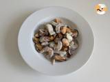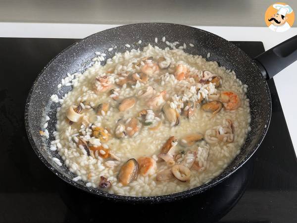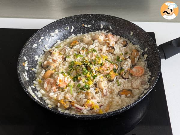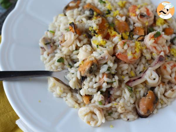 Cu ceva timp în urmă, am pregătit linguine cu fructe de mare congelate și au fost un mare succes. Așadar, am decis să reproducem acea magie cu un risotto la fel de gustos și super practic. Lucrul minunat la această rețetă este că o puteți pregăti în cel mai scurt timp, dar obțineți totuși un prim fel de mâncare elegant și gustos. Dacă aveți ceva mai mult timp la dispoziție, puteți face un stoc de casă pentru un rezultat și mai bogat și mai autentic, dar dacă vă grăbiți, nicio problemă! Puteți utiliza cu ușurință un cub de stoc (poate preparat acasă după rețeta noastră), care vă permite să accelerați procesul fără a compromite prea mult aroma. Acest risotto cu fructe de mare este perfect pentru o cină rapidă, dar impresionantă, care vă va impresiona oaspeții sau familia.