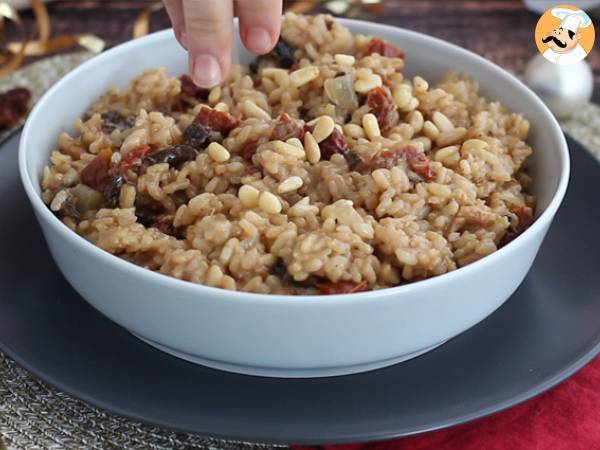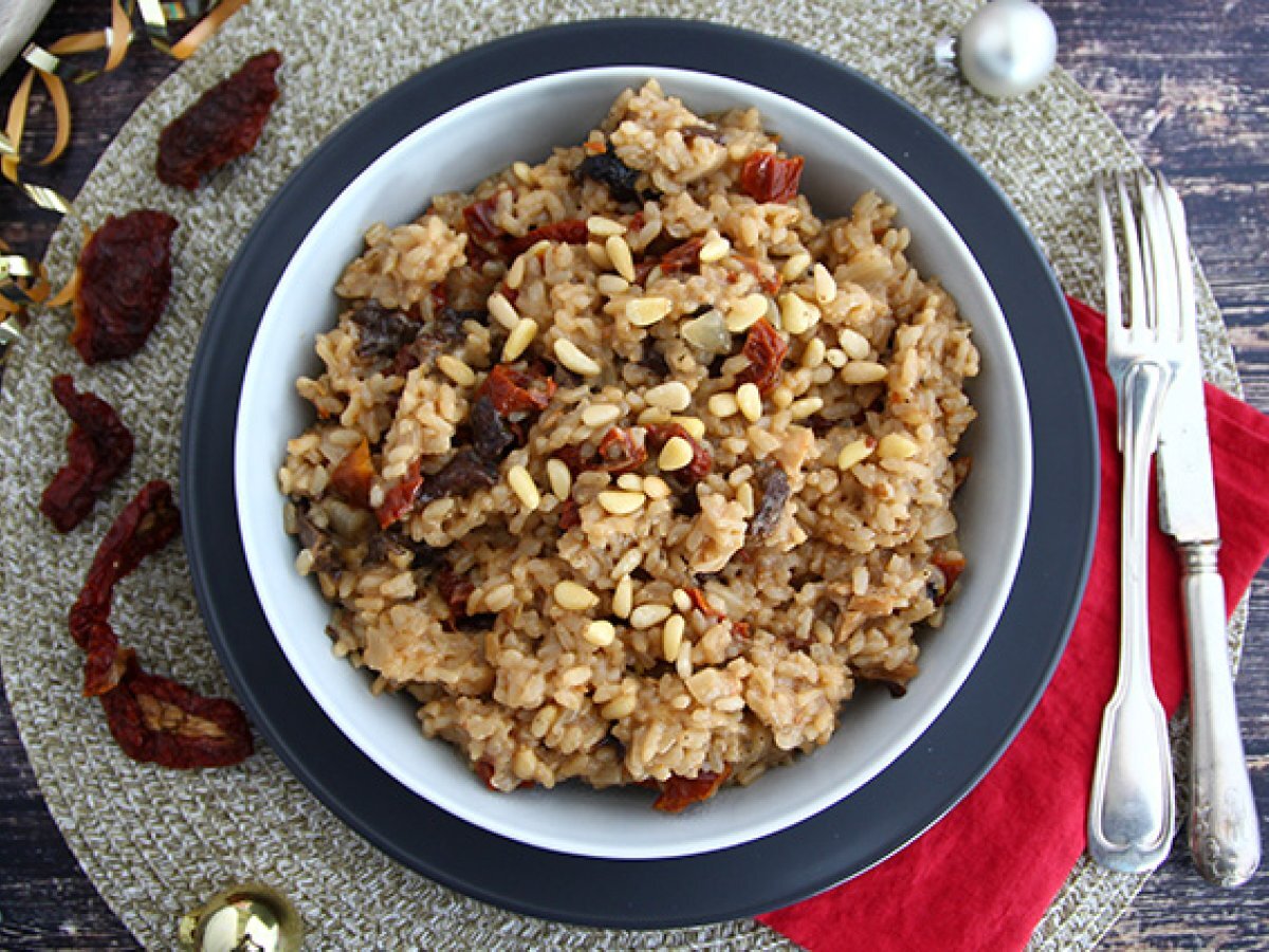 Acest risotto conține parmezan, care nu este vegan; pentru o variantă vegană, puteți omite parmezanul sau folosi un substitut vegetal.