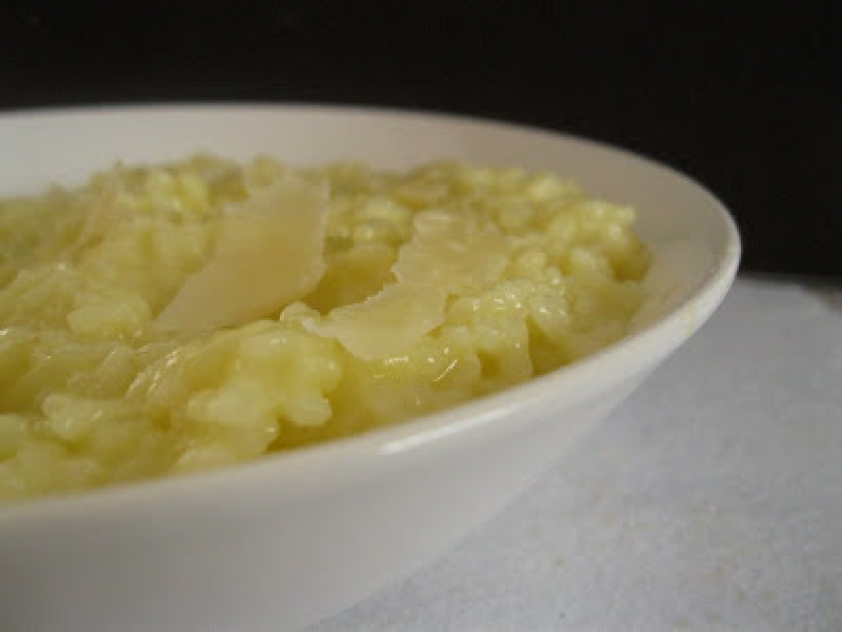 Risotto milanez Felul principalFoarte ușor37 min Trimite unui prieten Printează pagina Adresează o întrebare autorului Postează o poză cu rețeta gătită de tine Ingrediente 4 1/4 cup ulei extra-virgin de masline 1 ceapa de marime medie, tocata in cubulete de 5-6mm 1 lingurita de sofran 3 1/2 cups supa de pui fierbinte 2 cups orez arborio 1/2 cup vin alb 100g unt nesarat 1/2 cup Parmigiano-Reggiano dat pe razatoare, plus cativa carlionti pt servit