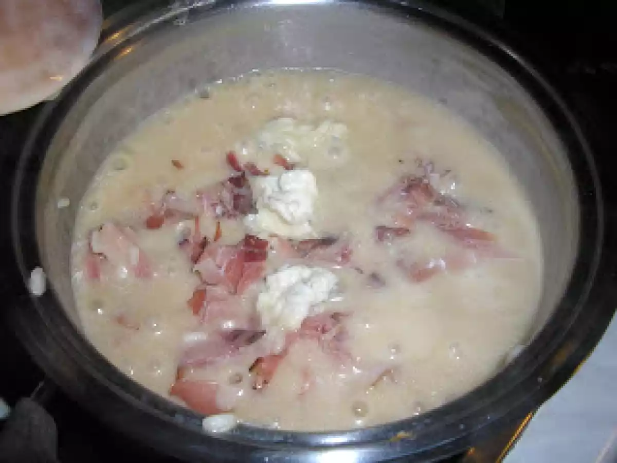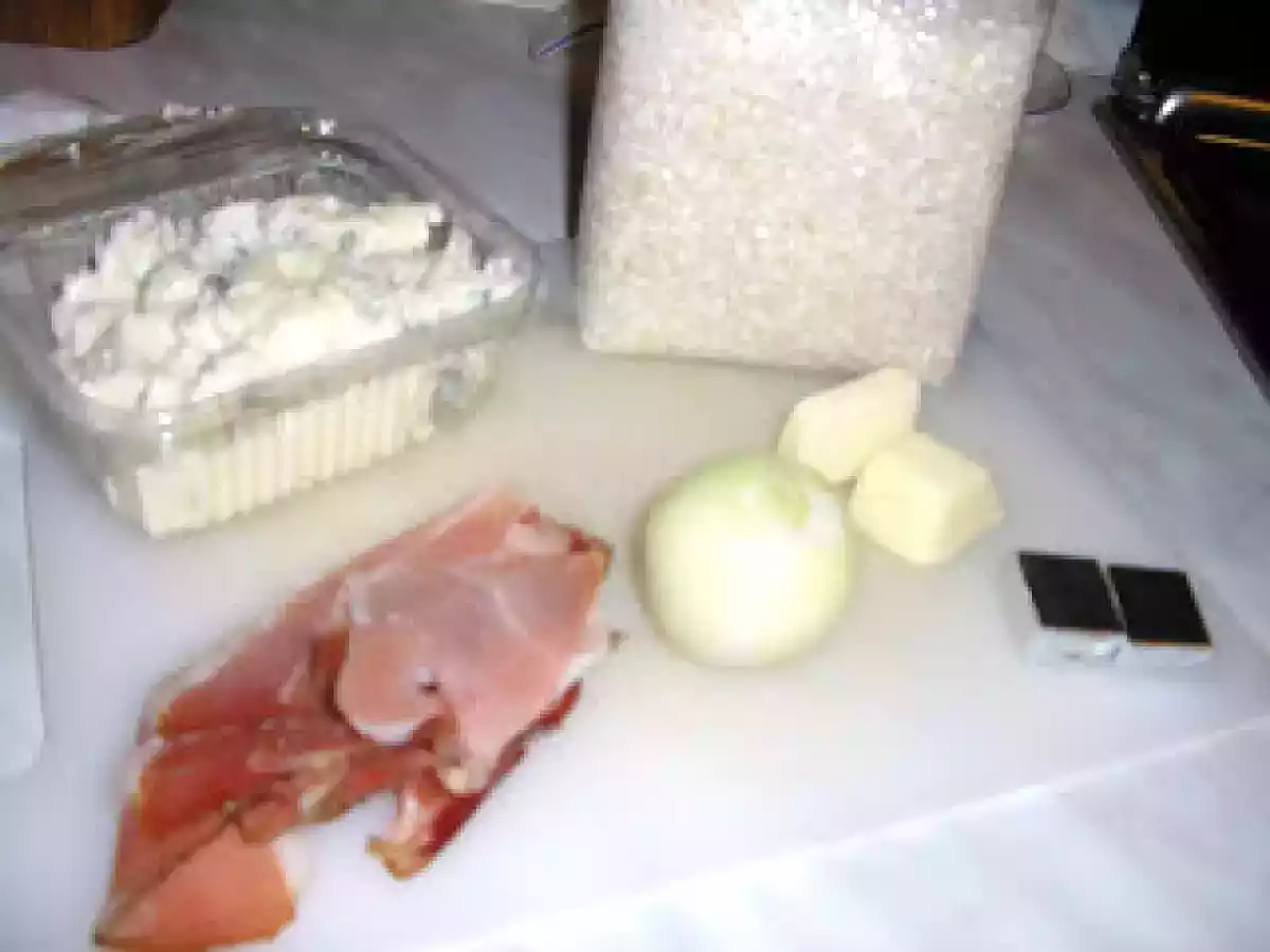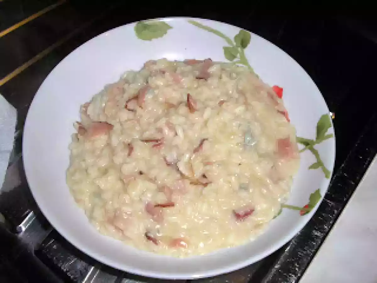 Risotto speck e gorgonzola (orez cu gorgonzola si bacon) PrecedentulUrmătorul Felul principalFoarte ușor1 zi 6 h 30 m Trimite unui prieten Printează pagina Adresează o întrebare autorului Postează o poză cu rețeta gătită de tine Ingrediente 2 300 g orez 100 g bacon 100 g gorgonzola 50 g unt 1 ceapa tocat marunt supa de carne sare, piper.