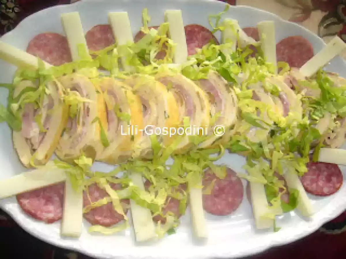 Rulada de omleta PrecedentulUrmătorul Felul principalFoarte ușor50 min Trimite unui prieten Printează pagina Adresează o întrebare autorului Postează o poză cu rețeta gătită de tine Ingrediente 6 4 oua 150 ml smantana sae, piper
