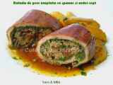 Rulada de porc aromat Felul principalFoarte ușor55 min Trimite unui prieten Printează pagina Adresează o întrebare autorului Postează o poză cu rețeta gătită de tine Ingrediente 8 2 kg spata de porc fara os 3 catei usturoi taiati marunt 1 lingura seminte de fenicul zdrobite 1 lingura boabe de piper negru zdrobite 1 lingura rozmarin tocat 3 frunze de dafin tocate marunt Boabe de mustar 1 lingura piper alb 300 ml vin alb Felii de prosciutto