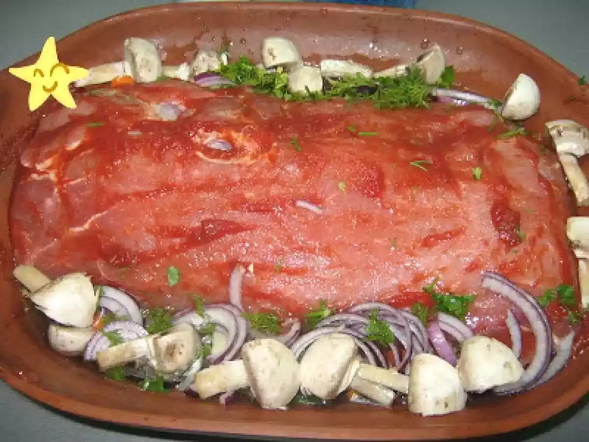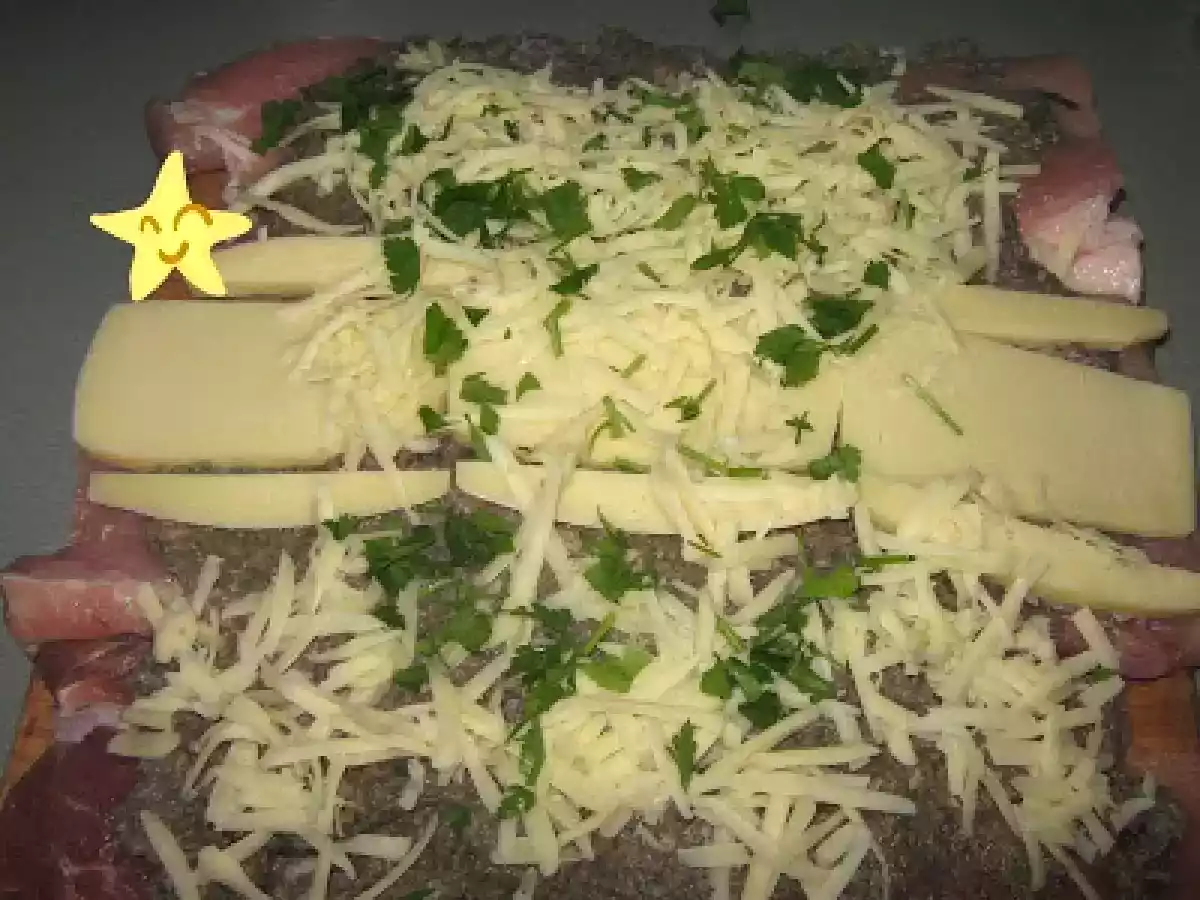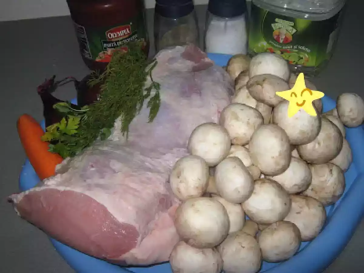 Rulada de porc cu ciuperci si cascaval PrecedentulUrmătorul Felul principalFoarte ușor1 oră Trimite unui prieten Printează pagina Adresează o întrebare autorului Postează o poză cu rețeta gătită de tine Ingrediente 4 pentru rulada: 1,4 kg cotlet de porc 600 g ciuperci 1 buc ceapa rosie 3-4 catei usturoi 200 g cascaval 2-3 linguri pasta de tomate sare,piper patrunjel verde marar ulei de floarea-soarelui pentru sos: 1 buc ceapa rosie 100 g ciuperci verdeata ulei de floarea-soarelui 1 buc morcov