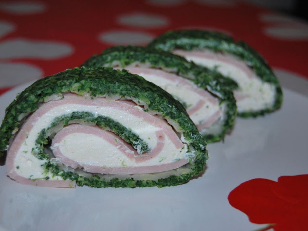 Rulada de spanac cu sunca si branza Felul principalFoarte ușor40 min Trimite unui prieten Printează pagina Adresează o întrebare autorului Postează o poză cu rețeta gătită de tine Ingrediente 4 500 g spanac congelat 1 ou 2-3 linguri pesmet sare, piper 150 g cascaval 200 g sunca presata 1 cutie Almette cu hrean 100 g branza feta