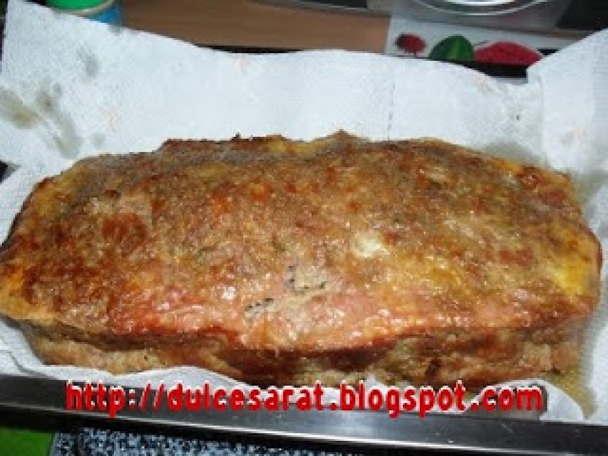 Rulada din carne tocata PrecedentulUrmătorul Felul principalFoarte ușor1 oră Trimite unui prieten Printează pagina Adresează o întrebare autorului Postează o poză cu rețeta gătită de tine Ingrediente 4 800 g carne tocata amestec (vita-porc), 2 cartofi mijlocii razuiti pe razatoarea cu gauri mici si bine storsi, 2 felii de paine inmuiate in apa apoi bine stoarse 2 oua, sare 2 lingurite piper 1 lingurita boia 2 lingurite vegeta 1 legatura patrunjel verde tocat marunt 5-6 catei de usturoi zdrobiti cu presa de usturoi 1 ou pt uns rulada deasupra.