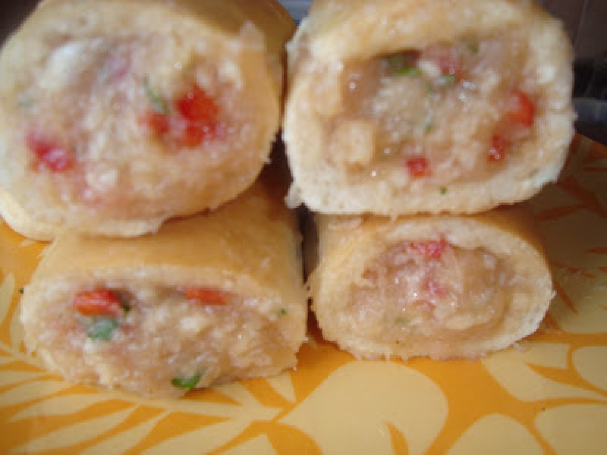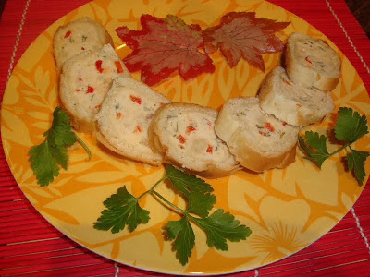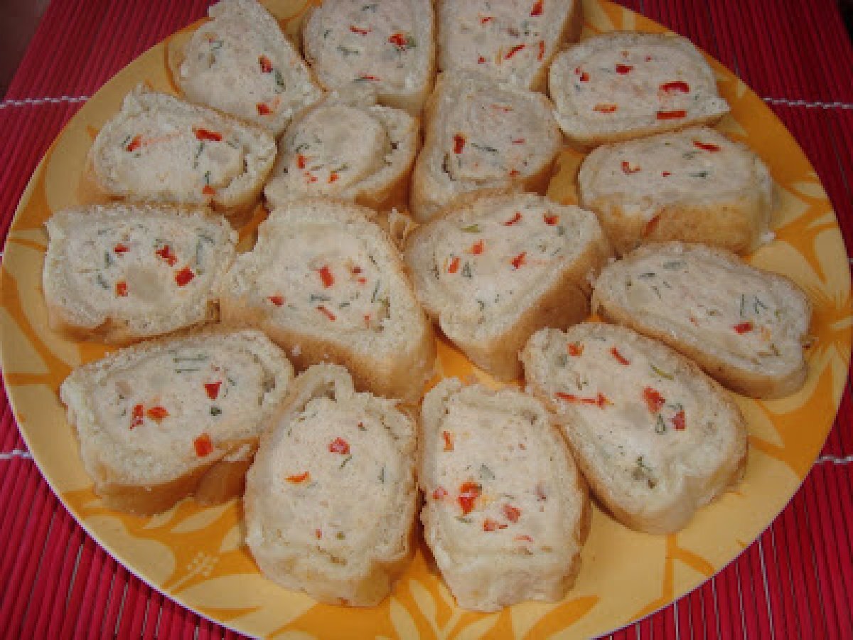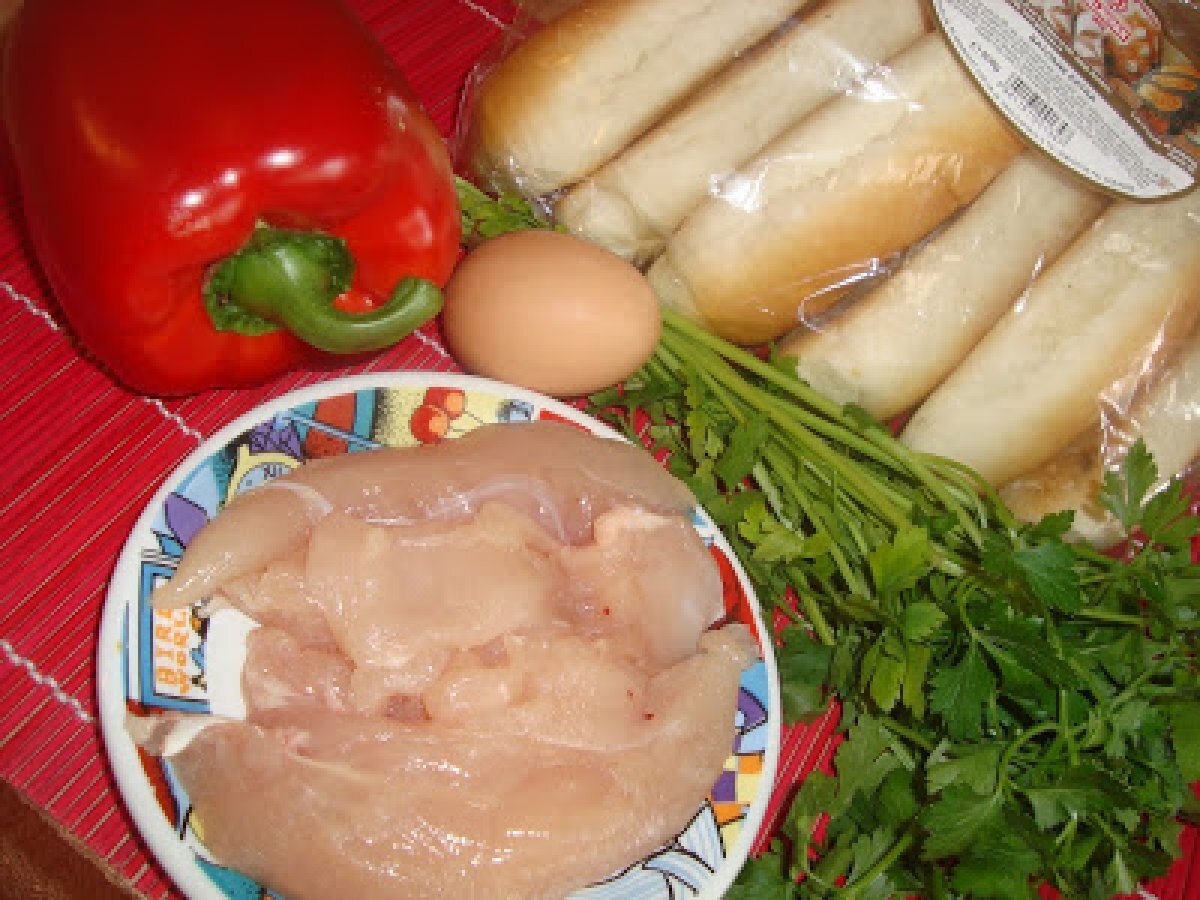 Rulada din paine cu piept de pui PrecedentulUrmătorul Felul principalFoarte ușor1 h 20 m Trimite unui prieten Printează pagina Adresează o întrebare autorului Postează o poză cu rețeta gătită de tine Ingrediente 2 200 g piept pui 6 batoane 1/2 ardei gras rosu 1 ou 3-4 fire patrunjel sare,piper