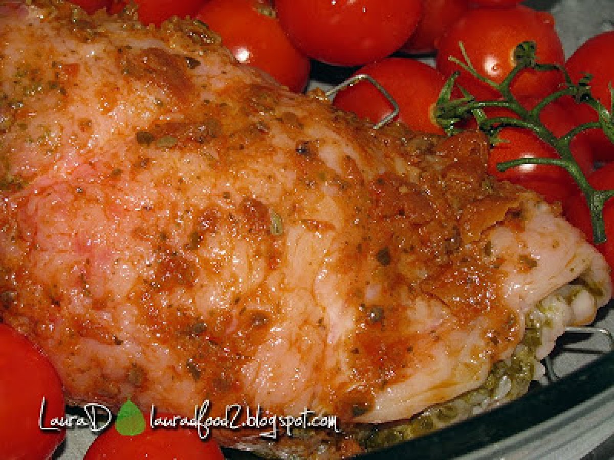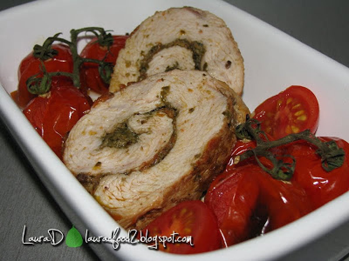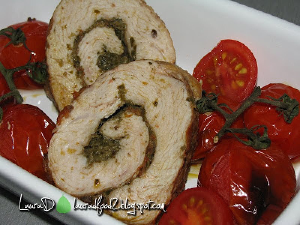 Rulada din piept de curcan cu pesto PrecedentulUrmătorul Felul principalFoarte ușor1 h 20 m Trimite unui prieten Printează pagina Adresează o întrebare autorului Postează o poză cu rețeta gătită de tine Ingrediente 2 1 lingurita ulei de masline cu busuioc 1 piept de curcan, fara piele si os 1-2 linguri Pesto Rosso 1-2 linguri Pesto 500 g rosii cherry