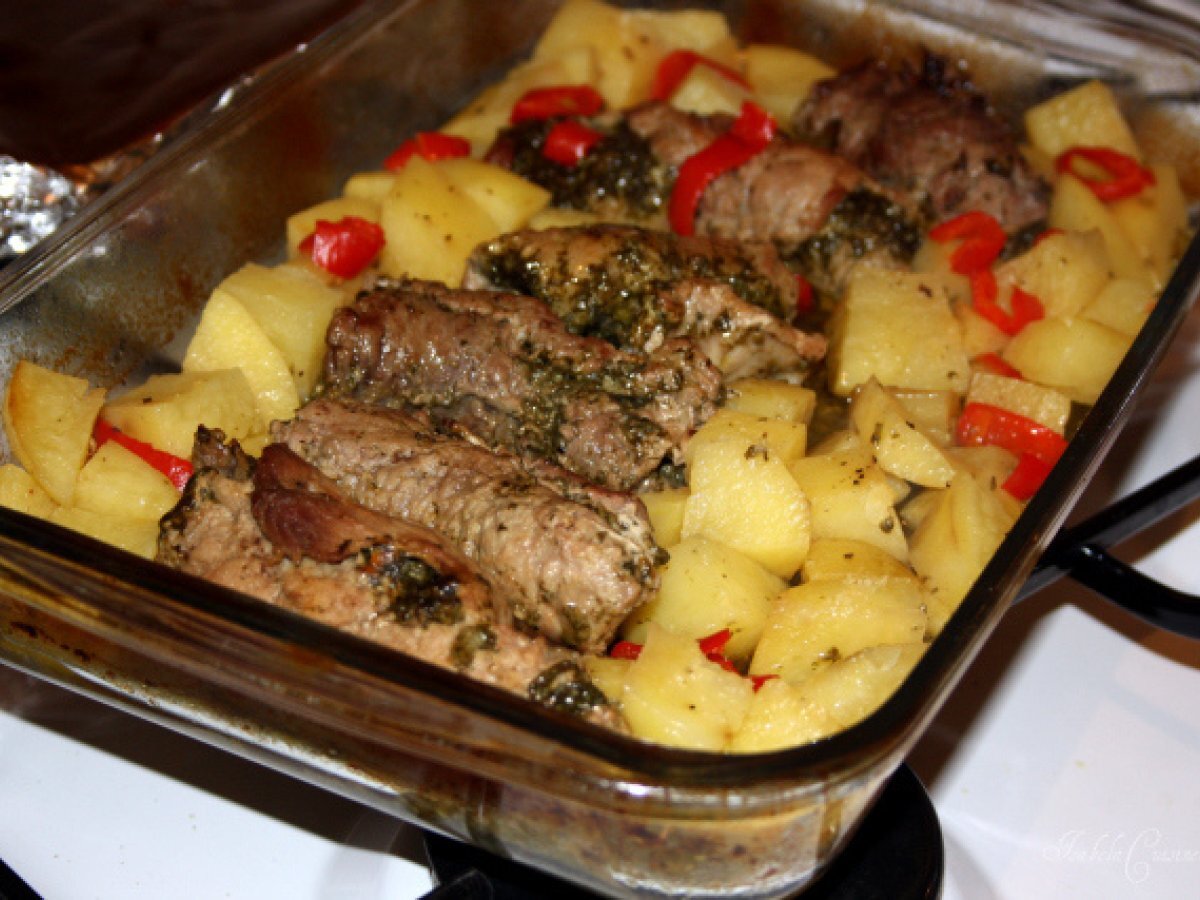Rulade de porc cu pesto de patrunjel PrecedentulUrmătorul Felul principalFoarte ușor2 ore Trimite unui prieten Printează pagina Adresează o întrebare autorului Postează o poză cu rețeta gătită de tine Ingrediente 4 6 snitele de porc 2 legaturi mari de patrunjel 1 lingura seminte de pin 3 linguri ulei de masline 1 catel de usturoi sare, piper 70 g parmezan ras 4 cartofii medii 1 ardei capia rosu