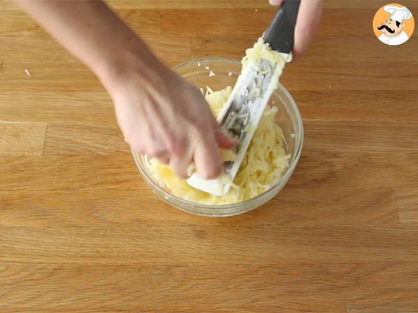 Decojiti cartofii si dati-i pe razatoare.