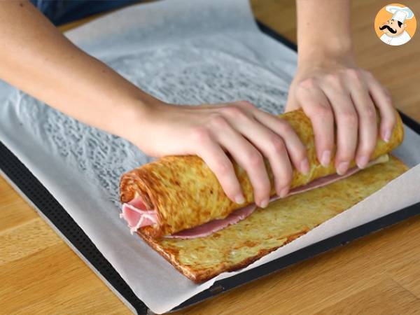Facut cu cartofi si garnisit cu branza Raclette + sunca, un rulou de care se va indragosti si ultima papila gustativa. Cine e pregatit sa testeze reteta?