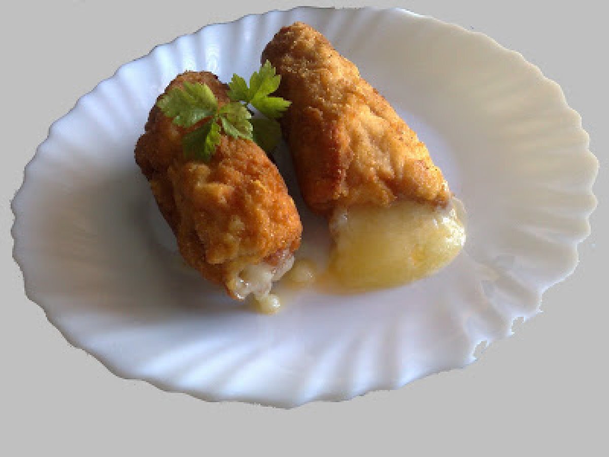 Rulouri de carne cu cascaval PrecedentulUrmătorul Felul principalFoarte ușor40 min Trimite unui prieten Printează pagina Adresează o întrebare autorului Postează o poză cu rețeta gătită de tine Ingrediente 2 8 file de muschi de porc 8 felii de cascaval 2 oua 2 -3 linguri faina pesmet si ulei pentru prajit sare
