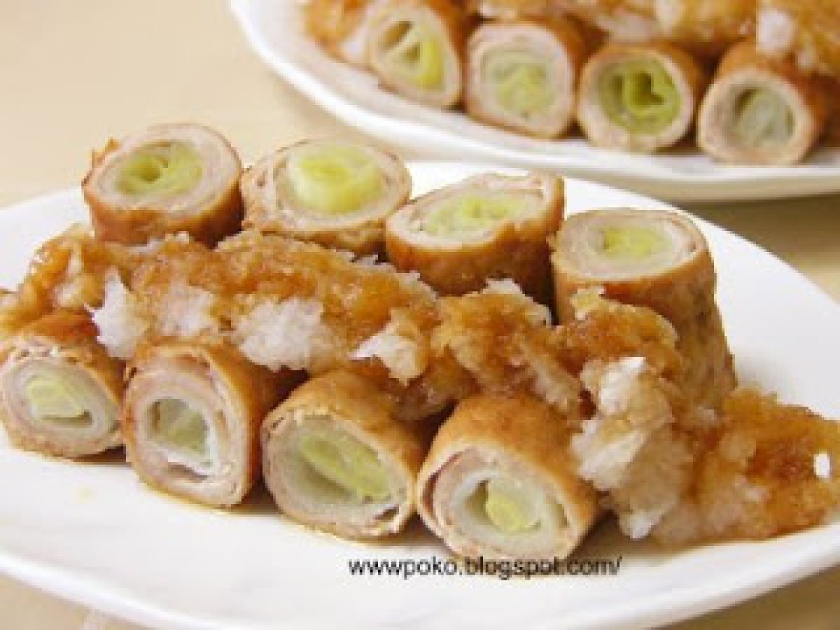 Rulouri de carne cu praz PrecedentulUrmătorul Felul principalFoarte ușor30 min Trimite unui prieten Printează pagina Adresează o întrebare autorului Postează o poză cu rețeta gătită de tine Ingrediente 2 2 fire de praz carne de porc slaba(felii) 20-25 g ridiche alba 1 lingura ulei Pt sos: 100 ml supa dashi 2 linguri sos de soia 4 linguri mirin(sau vin cu zahar) 2 linguri sake(sau vin alb)