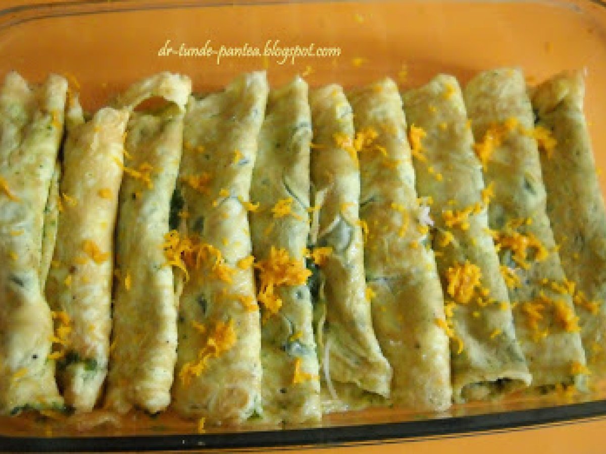Rulouri de ou cu spanac PrecedentulUrmătorul Felul principalFoarte ușor50 min Trimite unui prieten Printează pagina Adresează o întrebare autorului Postează o poză cu rețeta gătită de tine O reteta simpla si foarte gustoasa pt zilele de proteine . Ingrediente 4 5 oua 200 g spanac inghetat coaja rasa de la jumate de portocala 2 catei de usturoi jumate de ceapa ulei de masline sare, piper