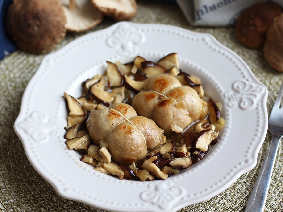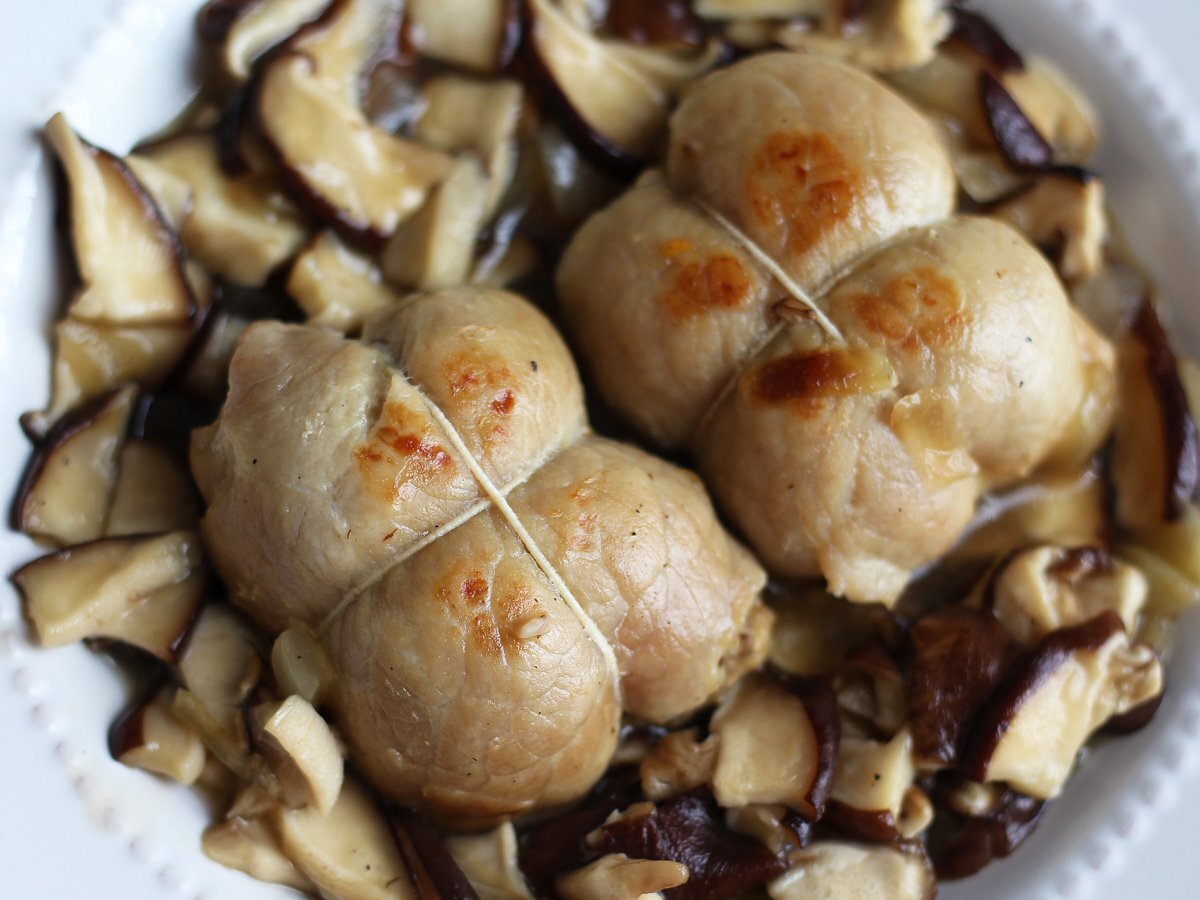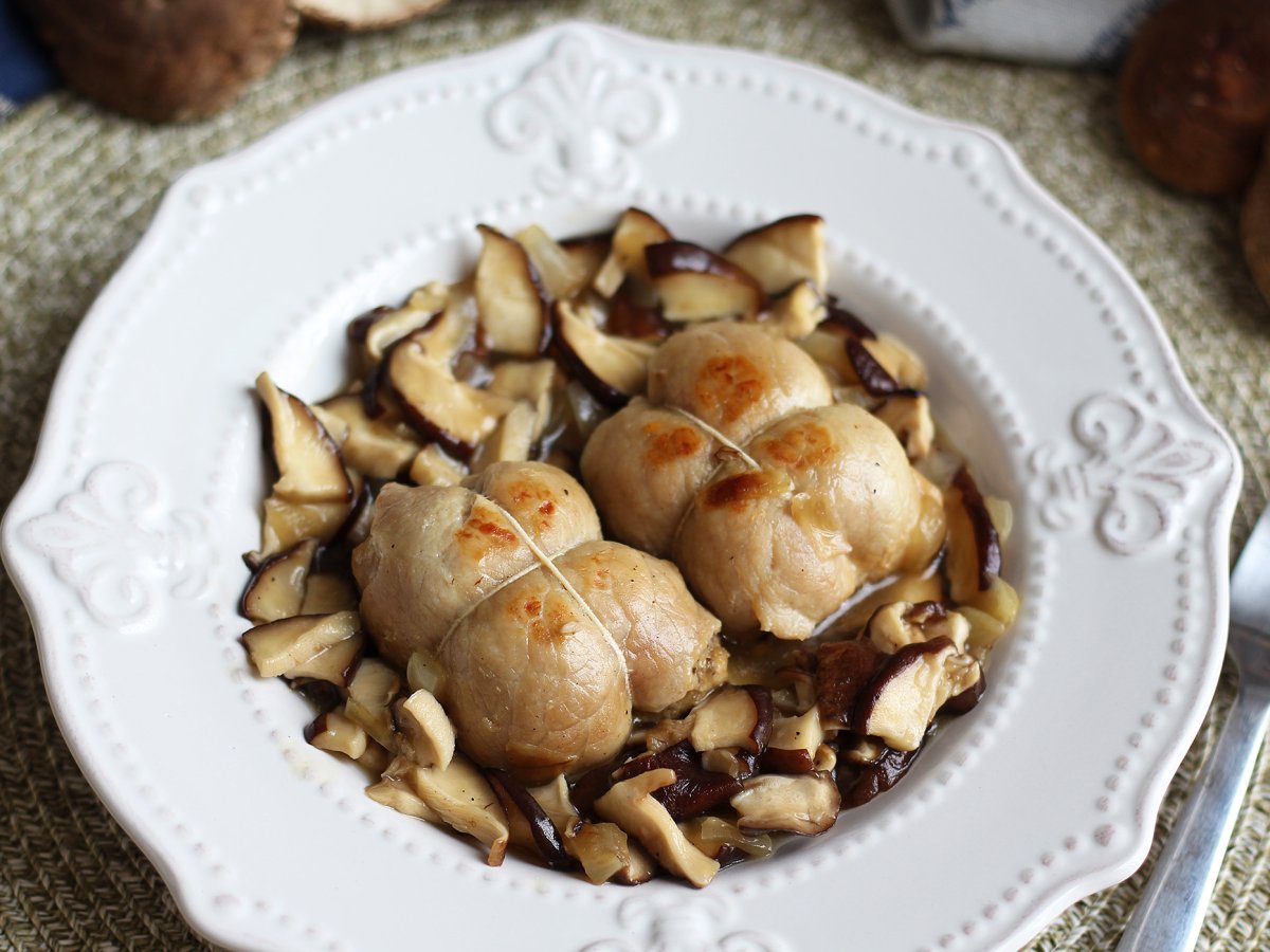 Un preparat pe care ne place să îl facem pentru o duminică în familie: rulouri din carne porc cu ciuperci și servite cu orez. Aici rulourile noastre sunt din cotlet de porc, umplut cu carne de cârnați aromată după gusturile proprii, pe care apoi îl legați. Un preparat simplu, eficient și mai presus de toate care încântă pe toată lumea! Aici am decis să le fierbem într-un sos de vin alb și apoi să adăugăm ciuperci.Explicațiile noastre, mai jos ↓