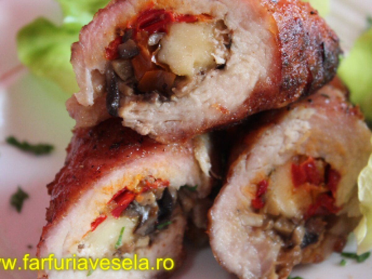 Rulouri din cotlet de porc cu ciuperci (reteta video)