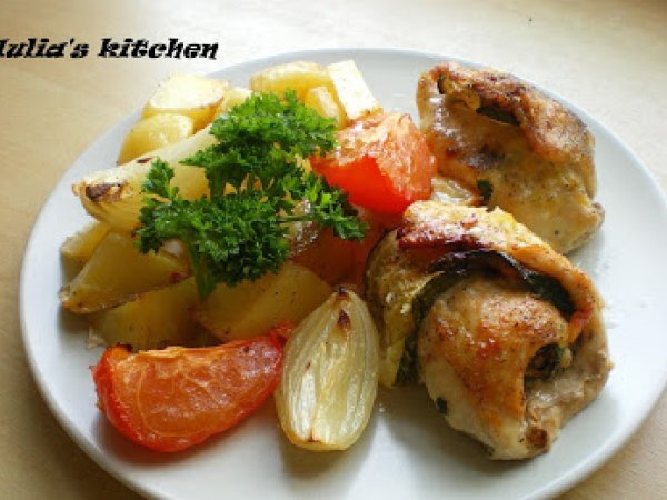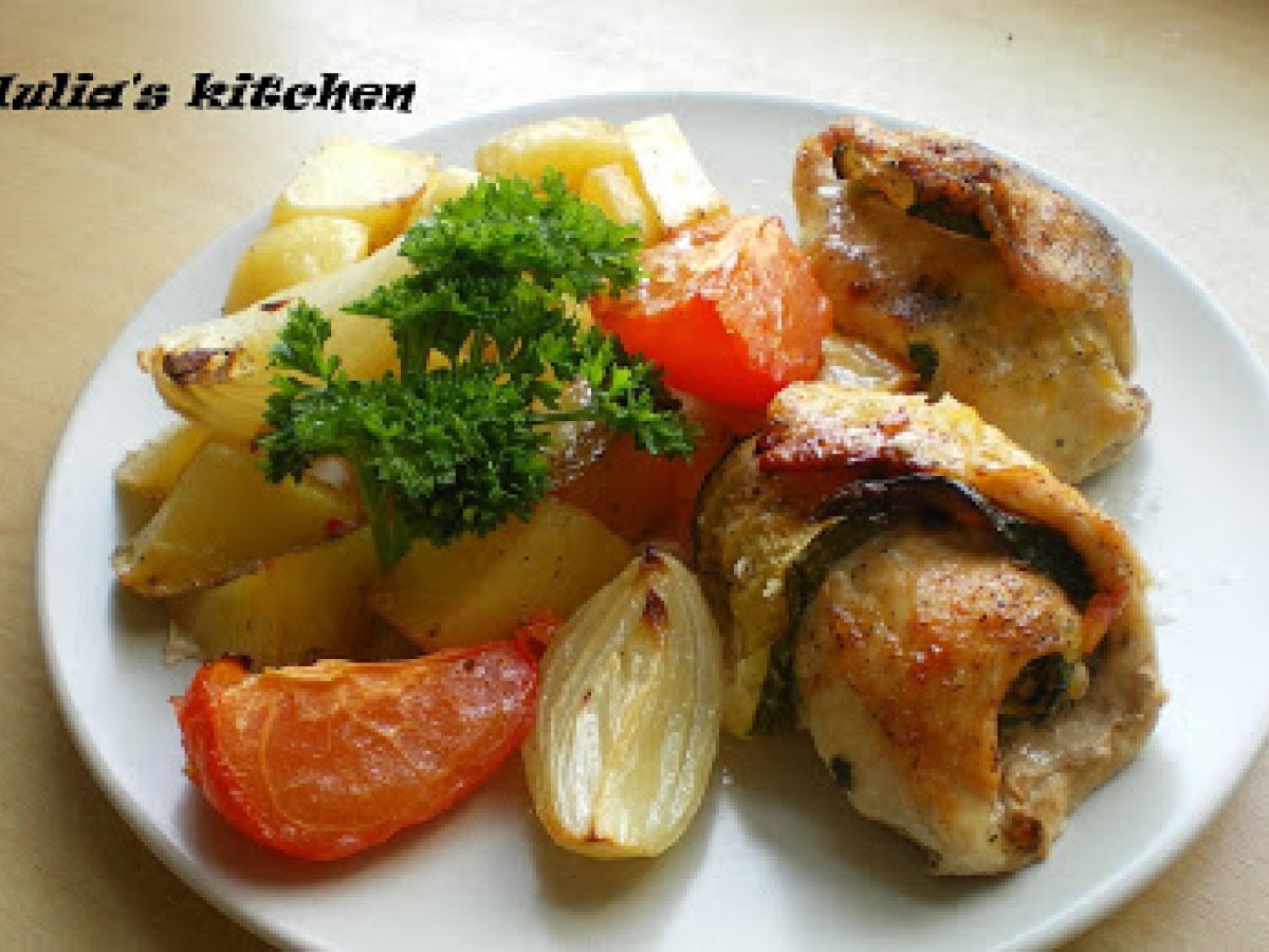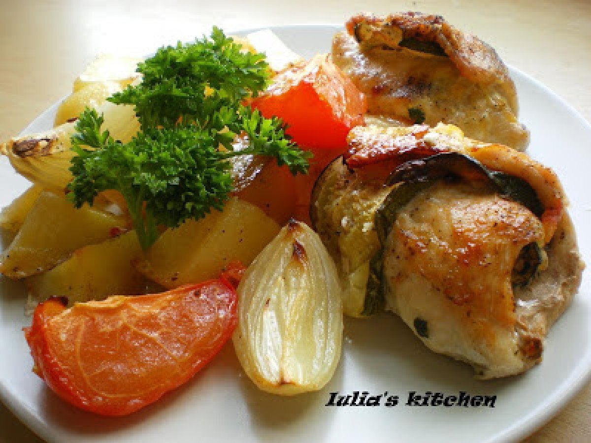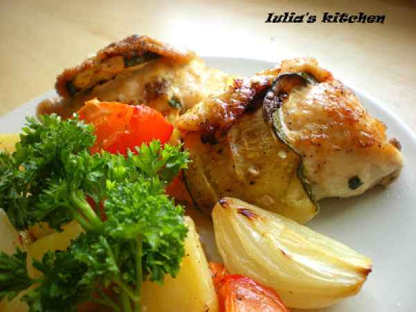 Rulouri din piept de pui cu zucchini PrecedentulUrmătorul Felul principalFoarte ușor40 min Trimite unui prieten Printează pagina Adresează o întrebare autorului Postează o poză cu rețeta gătită de tine Ingrediente 2 500 g piept de pui 1 zucchini 1 rosie 6 cartofi 1 ceapa delikat sare, piper.