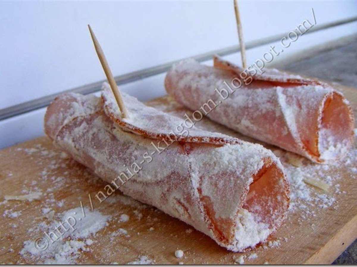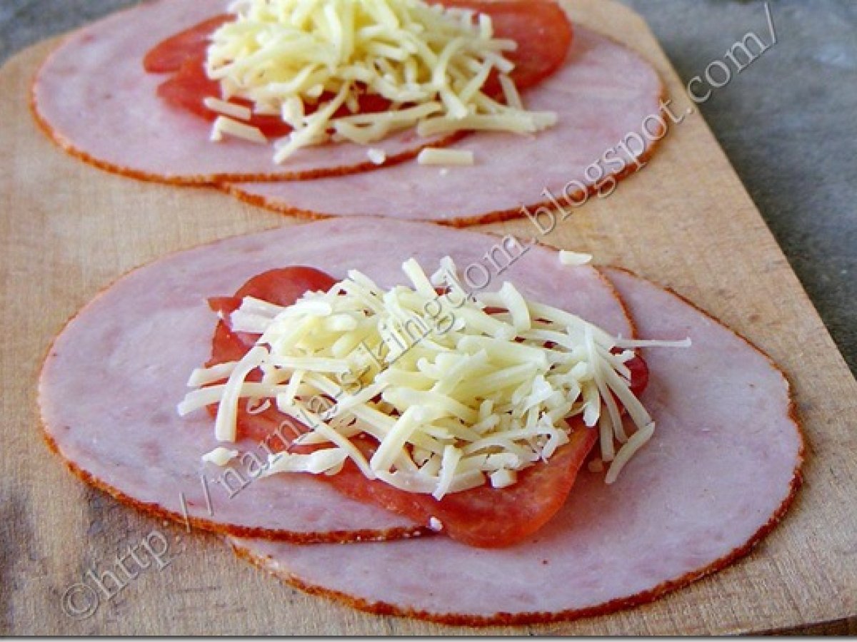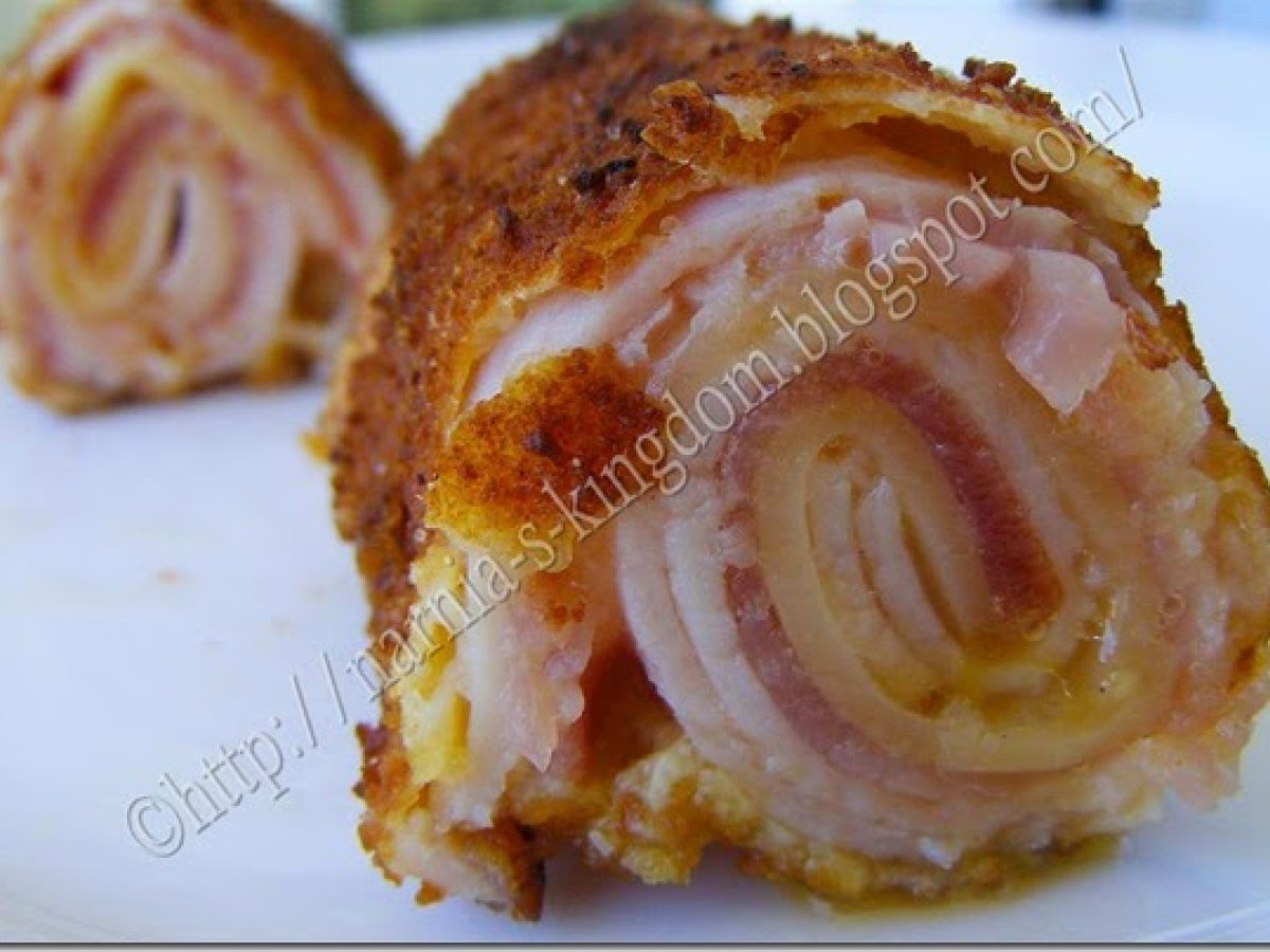 Rulouri rapide cu sunca si cascaval PrecedentulUrmătorul Felul principalFoarte ușor50 min Trimite unui prieten Printează pagina Adresează o întrebare autorului Postează o poză cu rețeta gătită de tine Ingrediente 4 4 felii sunca 2 linguri de cascaval emmental ras 2 felii mici de sunca afumata un ou 2 linguri faina pesmet ulei pentru prajit.