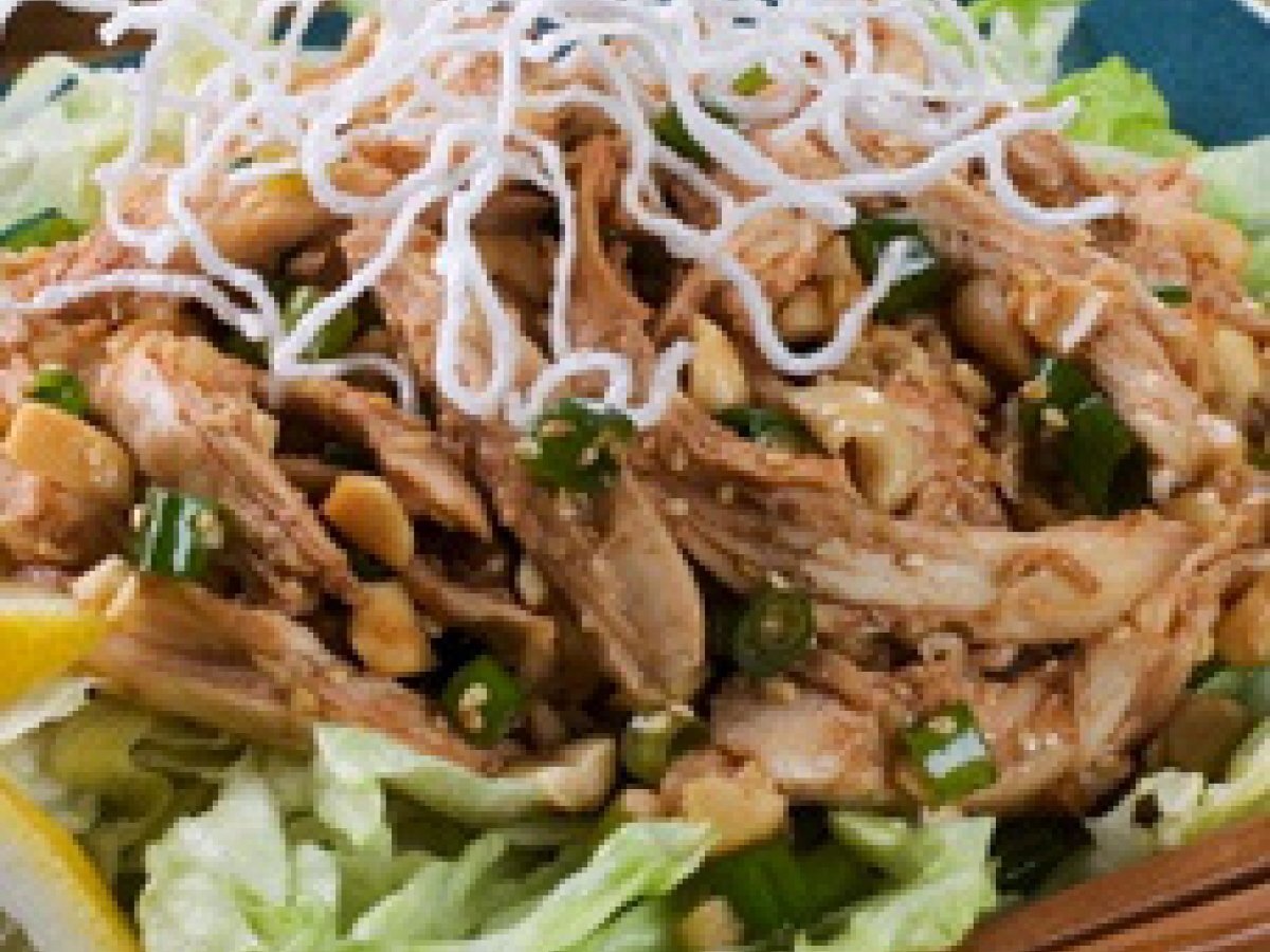 Salata de pui este usoara si gustoasa in zilele caniculare de vara. Este simplu de facut si hranitoare, iar gustul este exotic datorita uleiului de susan si otetului de orez, dar si datorita dressingului dulce acrisor.