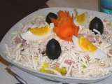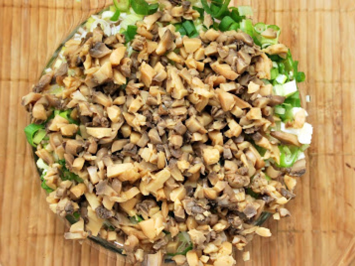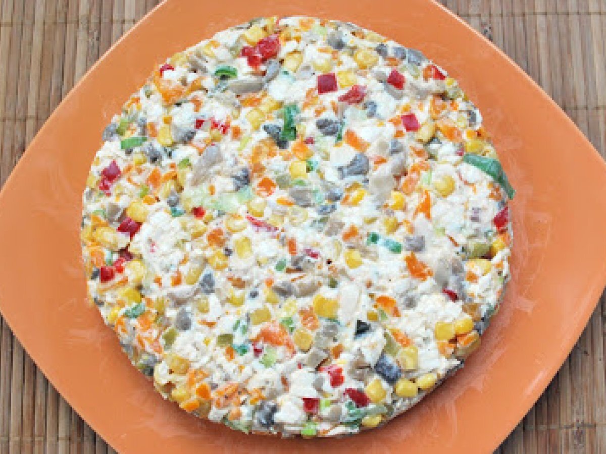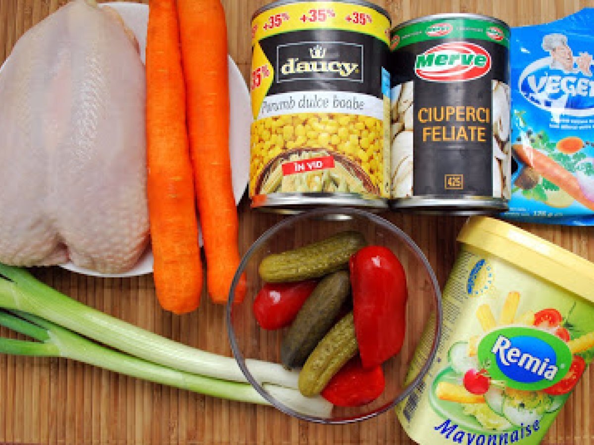 Salata bulgareasca PrecedentulUrmătorul Felul principalFoarte ușor50 min Trimite unui prieten Printează pagina Adresează o întrebare autorului Postează o poză cu rețeta gătită de tine Ingrediente 2 1 piept de pui puteti pune chiar si 2 daca vreti ca salata sa aiba mai multa carne 2 morcovi 2 cepe verzi 1 cutie mica de porumb in vid si daca se poate sa nu fie dulce 1 cutie ciuperci 3 castraveciori murati 2-3 bucati de gogosar murat vegeta maioneza 50-70 g cascaval sare piper