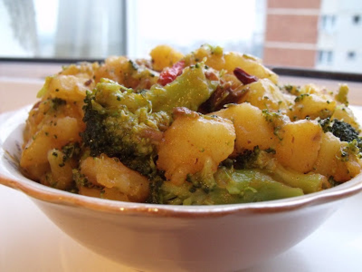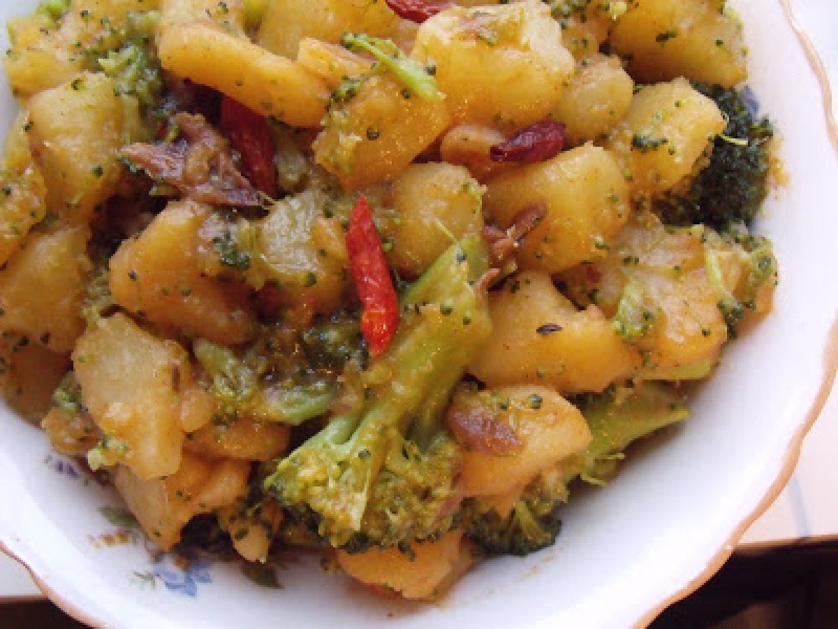 Salata calda de cartofi si broccoli (warm potatoes and broccoli salad) PrecedentulUrmătorul Felul principalFoarte ușor50 min Trimite unui prieten Printează pagina Adresează o întrebare autorului Postează o poză cu rețeta gătită de tine Ingrediente 2 300 g broccoli proaspat,spalat si desfacut buchetele 300 g cartofi,curatati si taiati cuburi 1 catel de usturoi,feliat foarte fin 4 fileuri de anchois 3-4 linguri de ulei de masline ardei iute rosu(chili),optional sare ,piper.