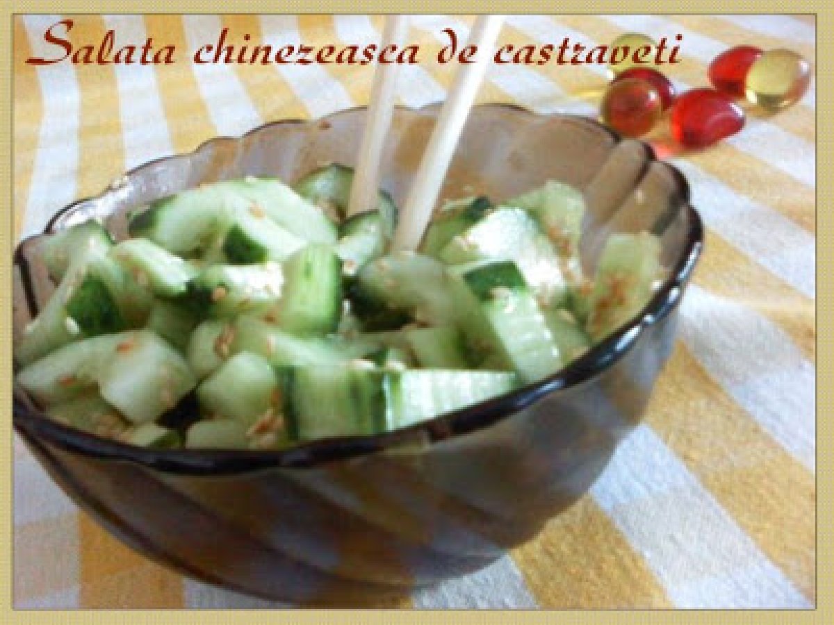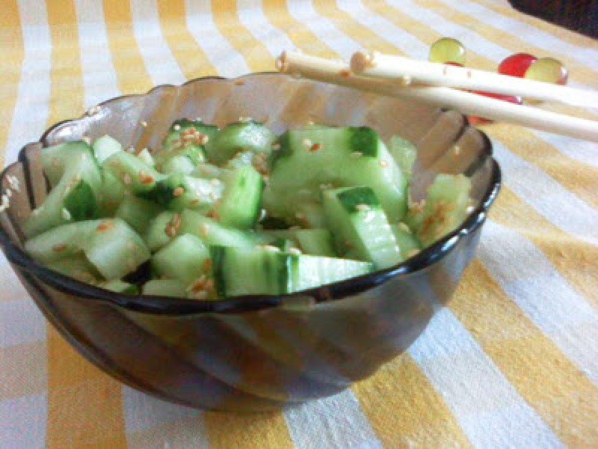 Salata chinezeasca de castraveti PrecedentulUrmătorul Felul principalFoarte ușor20 min118 Kcal Trimite unui prieten Printează pagina Adresează o întrebare autorului Postează o poză cu rețeta gătită de tine Ingrediente 2 3 castraveti putin ulei sare seminte de susan otet balsamic piper boabe Cost estimat: 2.14Euros€ (1.07€/porție)