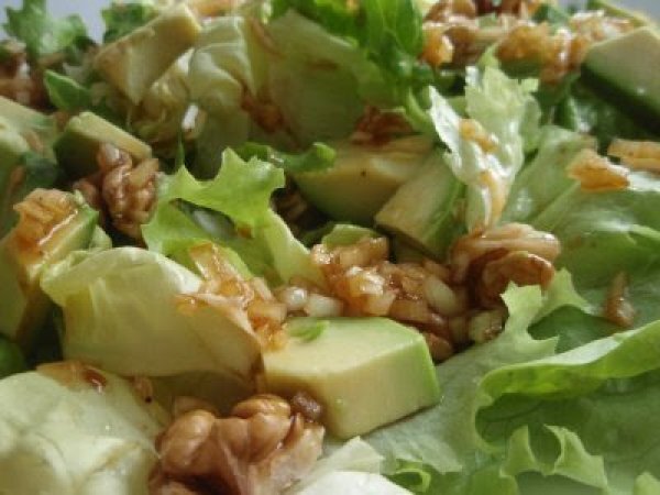 Salata cu avocado si nuca PrecedentulUrmătorul Felul principalFoarte ușor1 oră Trimite unui prieten Printează pagina Adresează o întrebare autorului Postează o poză cu rețeta gătită de tine Ingrediente 4 o salata verde / iceberg 2 avocado 4 - 6 linguri de nuci suc de lamaie o ceapa 8 linguri de ulei de floarea soarelui 4 linguri de otet balsamic o lingurita de miere sare, piper