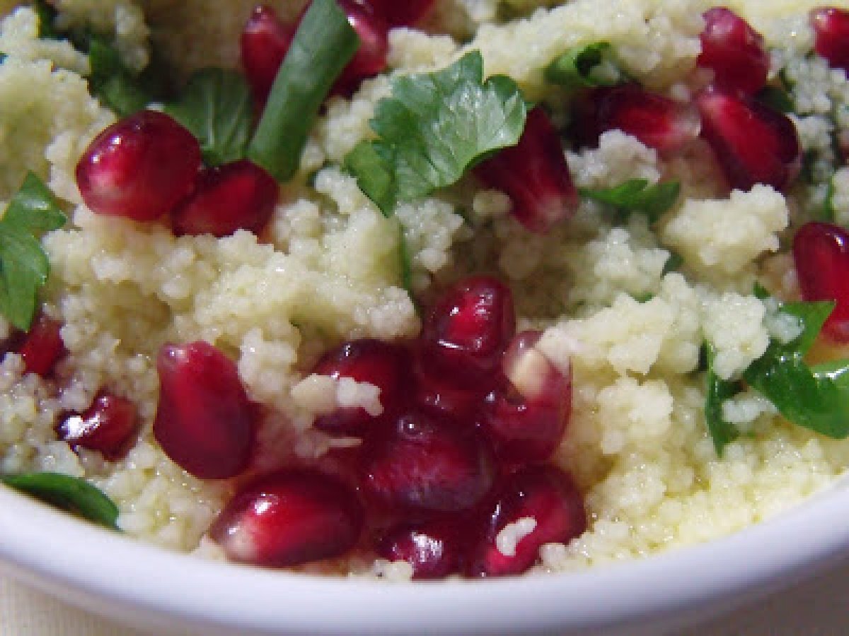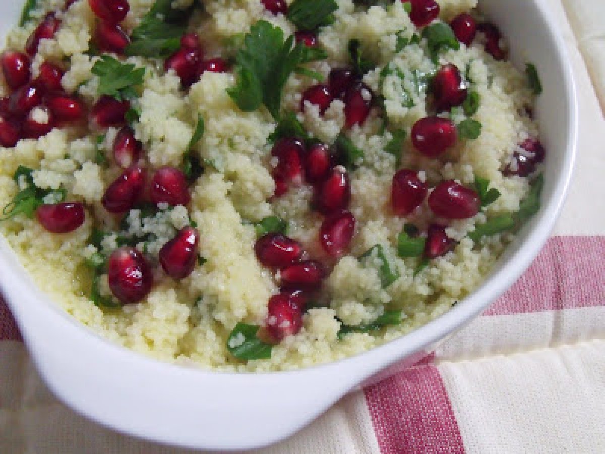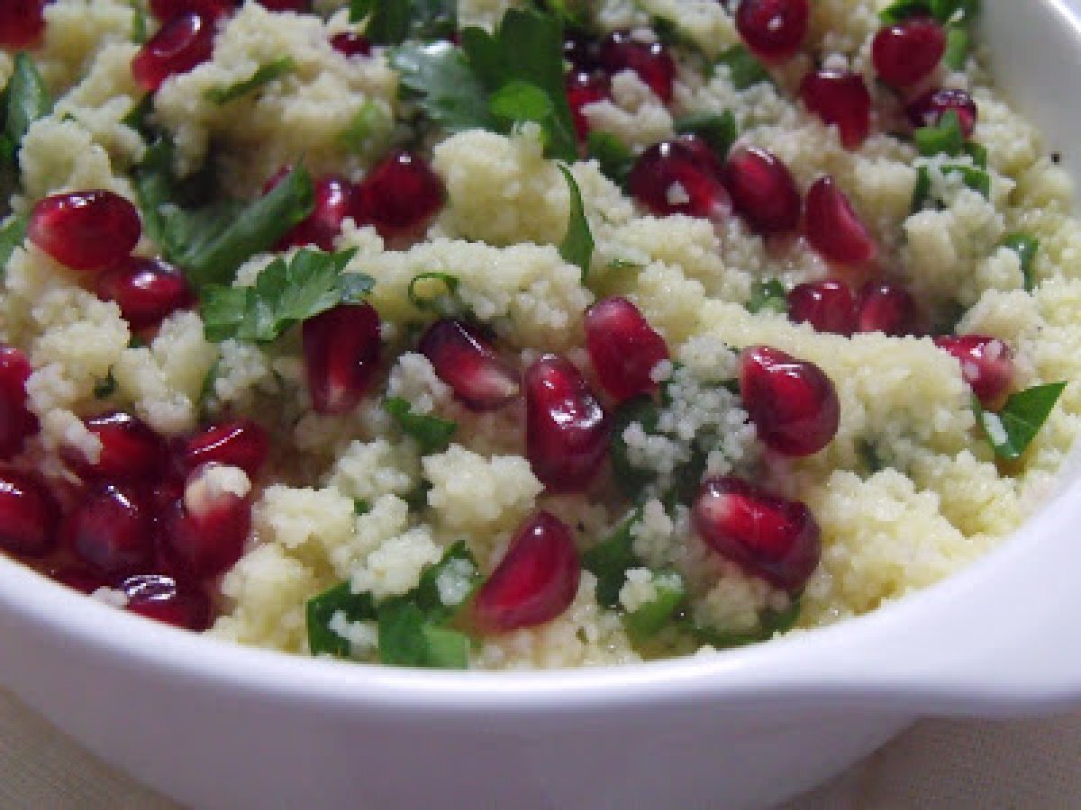 Salata cu couscous si rodie(couscous and pomegranate salad) PrecedentulUrmătorul Felul principalFoarte ușor40 min Trimite unui prieten Printează pagina Adresează o întrebare autorului Postează o poză cu rețeta gătită de tine Ingrediente 2 200 g couscous 200 ml apa fiarta 100 g seminte de rodie 1 buchet de patrunjel 1 lamiie (sucul) 2 lingurite ulei de masline sare,piper .
