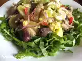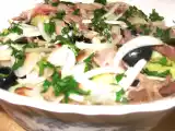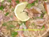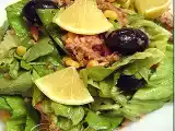 Salata cu peste alb votează acum Felul principalFoarte ușor40 min131 Kcal Trimite unui prieten Printează pagina Adresează o întrebare autorului Postează o poză cu rețeta gătită de tine Ingrediente 4 1 salata verde 1 peste alb fiert si racit 1 ceapa taiata rondele mai groase 4 ardei copti de la congelator 3 rosii mici pentru ornat ulei(de masline e mai bun)sare si otet. Cost estimat: 3.89Euros€ (0.97€/porție)