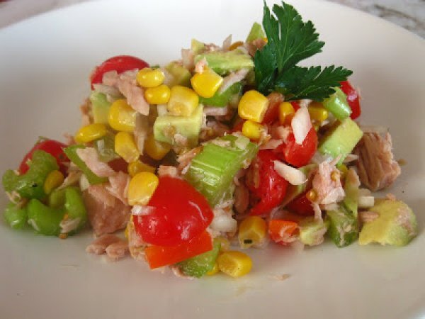 Salata cu ton Felul principalFoarte ușor30 min Trimite unui prieten Printează pagina Adresează o întrebare autorului Postează o poză cu rețeta gătită de tine Ingrediente 2 o conserva de ton, un pumn de rosii cherry taiate in jumatate, o jumatate de ardei gras taiat cubulete, 1 avocado taiat cuburi, 1/2 ceapa tocata marunt, 2-3 codite de telina bucatite, 3 linguri de boabe de porumb fiert, sare, piper, zeama de lamaie si ulei dupa gust.
