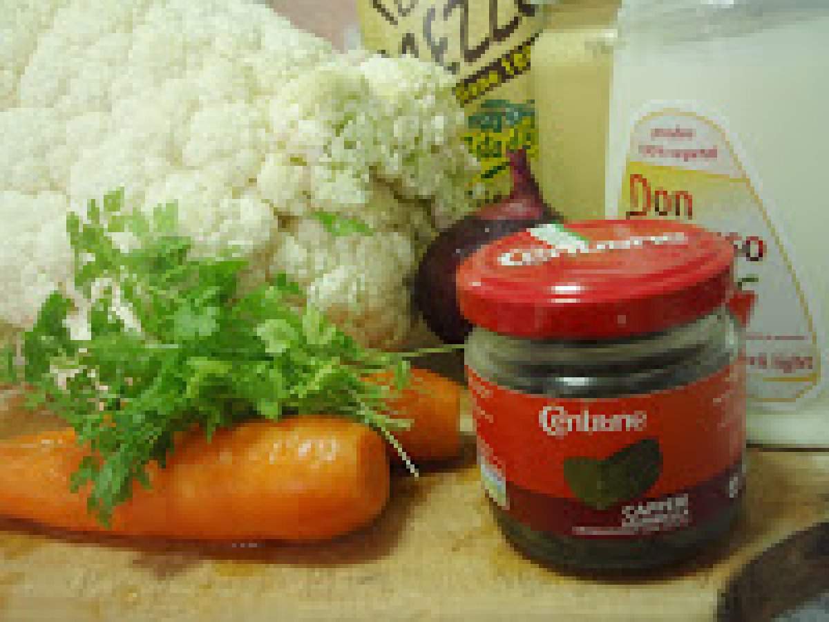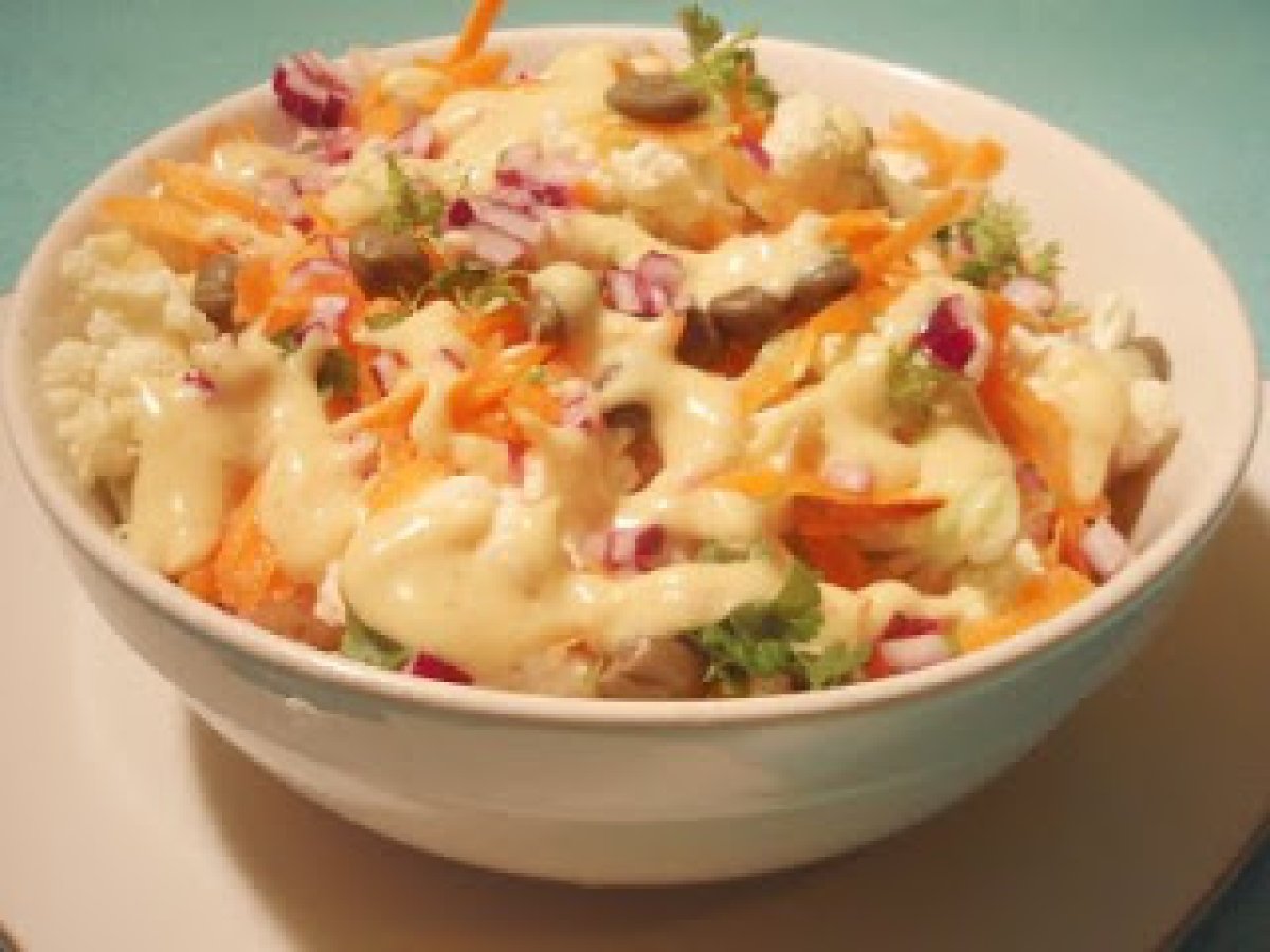 Salata de conopida si morcov PrecedentulUrmătorul Felul principalFoarte ușor40 min Trimite unui prieten Printează pagina Adresează o întrebare autorului Postează o poză cu rețeta gătită de tine Ingrediente 2 1 conopida mica sau 1/2 dintr-o conopida mare 2 morcovi, dati pe razatoarea mare 1 ceapa rosie, taiata fin 2 lingurite capere 2 linguri patrunjel taiat 1 lingurita otet alb 1 lingurita mustar Dijon 2 linguri ulei de masline 1 lingura maioneza sare, piper