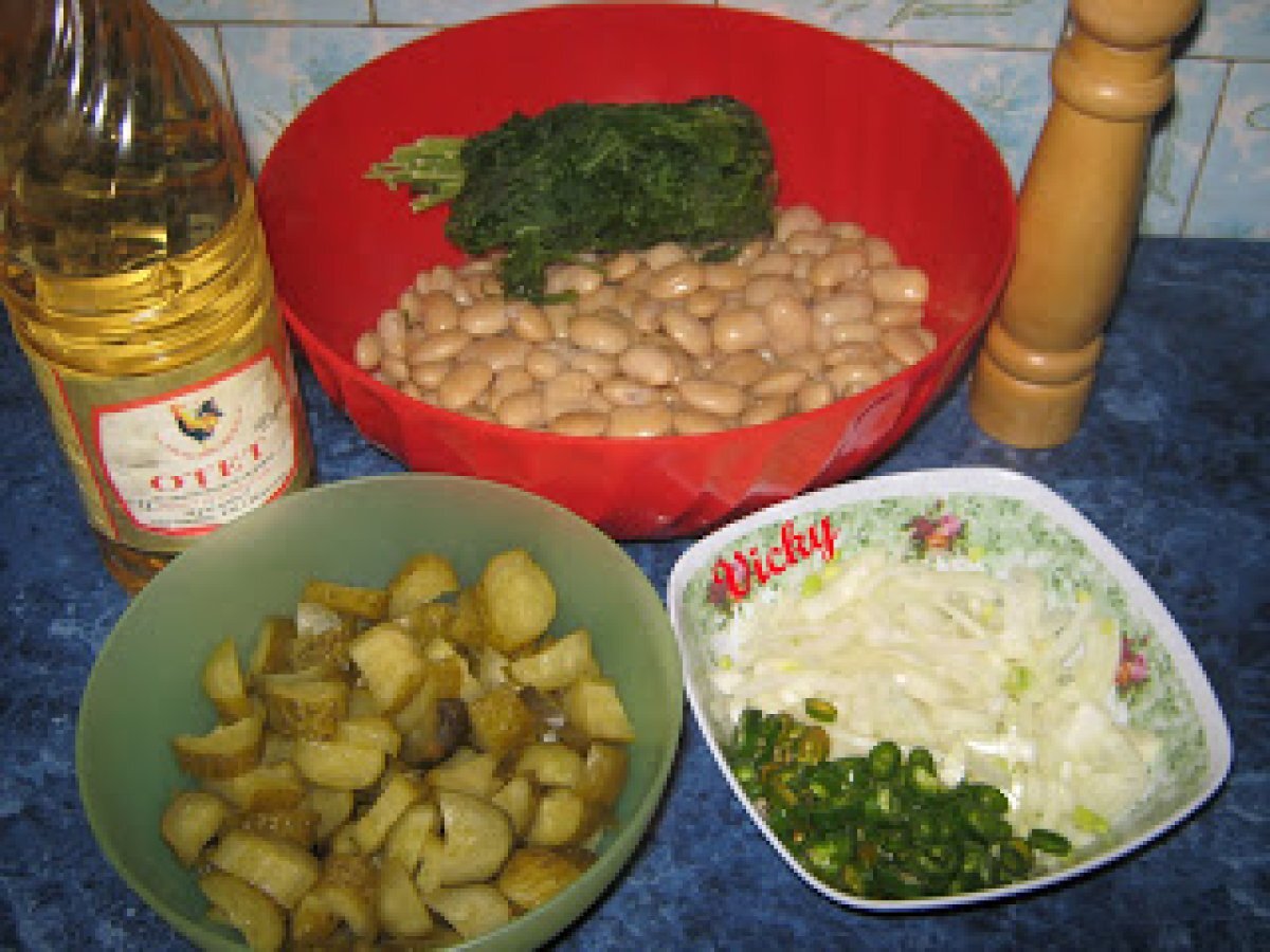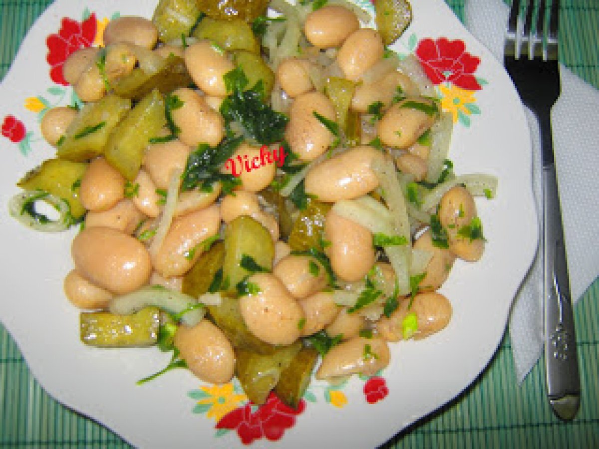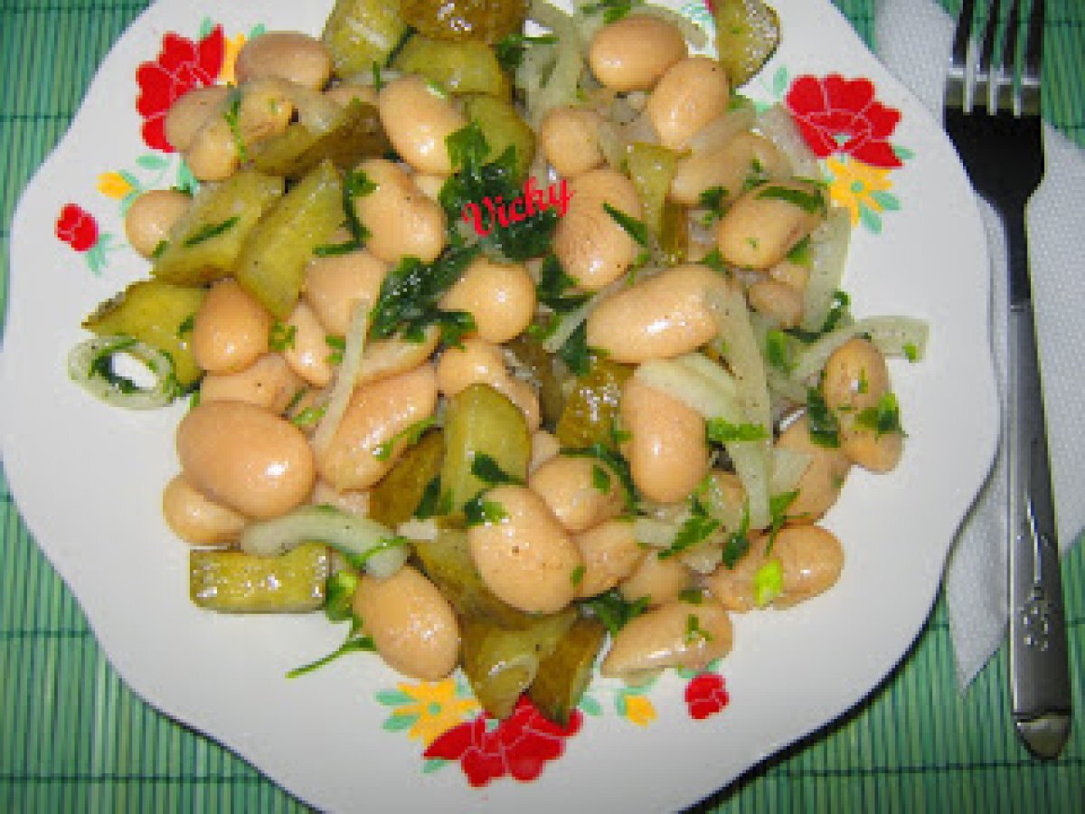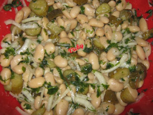 Salata de fasole boabe PrecedentulUrmătorul Felul principalFoarte ușor1 oră Trimite unui prieten Printează pagina Adresează o întrebare autorului Postează o poză cu rețeta gătită de tine Ingrediente 2 fasole 2 castraveti murati 2 ardei iuti 1 ceapa mare 1 leg. patrunjel sare, piper ulei si otet