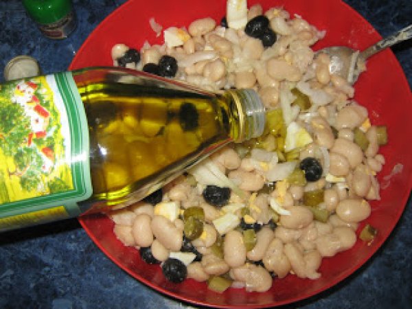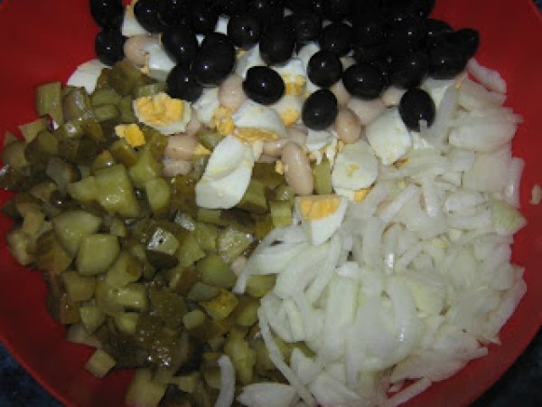 Salata de fasole cu masline si ou PrecedentulUrmătorul Felul principalFoarte ușor40 min Trimite unui prieten Printează pagina Adresează o întrebare autorului Postează o poză cu rețeta gătită de tine Ingrediente 4 fasole fiarta 2-3 castraveti murati 1 ceapa 2 oua fierte 150 g masline ulei, otet sare, piper, patrunjel