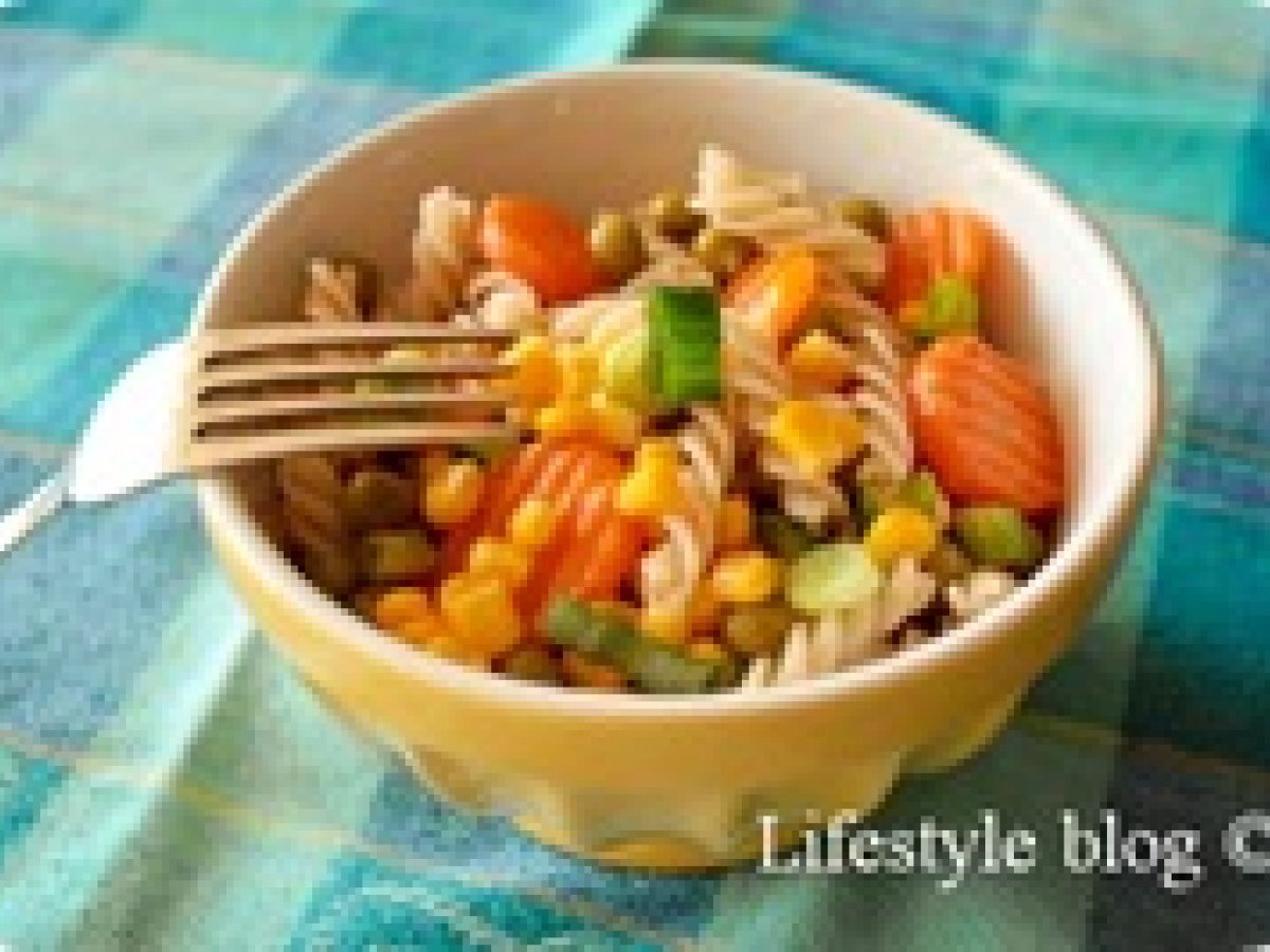 Salata de paste cu legume PrecedentulUrmătorul Felul principalFoarte ușor26 min Trimite unui prieten Printează pagina Adresează o întrebare autorului Postează o poză cu rețeta gătită de tine Savurati cu placere aceasta salata multicolora! Ingrediente 2 1 cutie mica de mazare cu morcovi 100 g mazare 3 morcovi fierte 100 g paste scurte 100 g porumb dulce sucul de la 1/2 lamaie 1 ceapa verde 1 lingurita de ulei de masline / de floarea soarelui