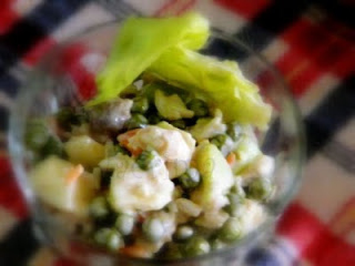 Salata fantezie din mazare, nuci, mere si banane impopotonate Felul principalFoarte ușor35 min Trimite unui prieten Printează pagina Adresează o întrebare autorului Postează o poză cu rețeta gătită de tine Ingrediente 3 1 kg mazare proaspata sau congelata 2 banane 2-3 mere 200 g nuci sau alune caju 2 morcovi fierti si taiati marunti 2 linguri de otet balsamic 2 linguri de zahar 2 linguri zeama de lamaie 100 g iaurt light sare 1 lingurita piper alb
